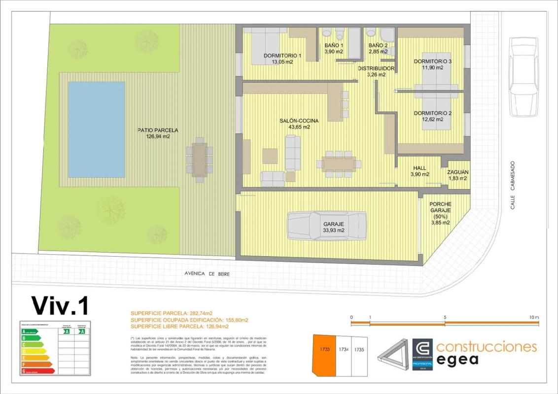 Próxima construcción de tres viviendas unifamiliares en planta baja, con amplio jardín en Olite Tres dormitorios, dos baños, salón cocina de 44m2 y amplio jadín a pié de planta. Climatizac...