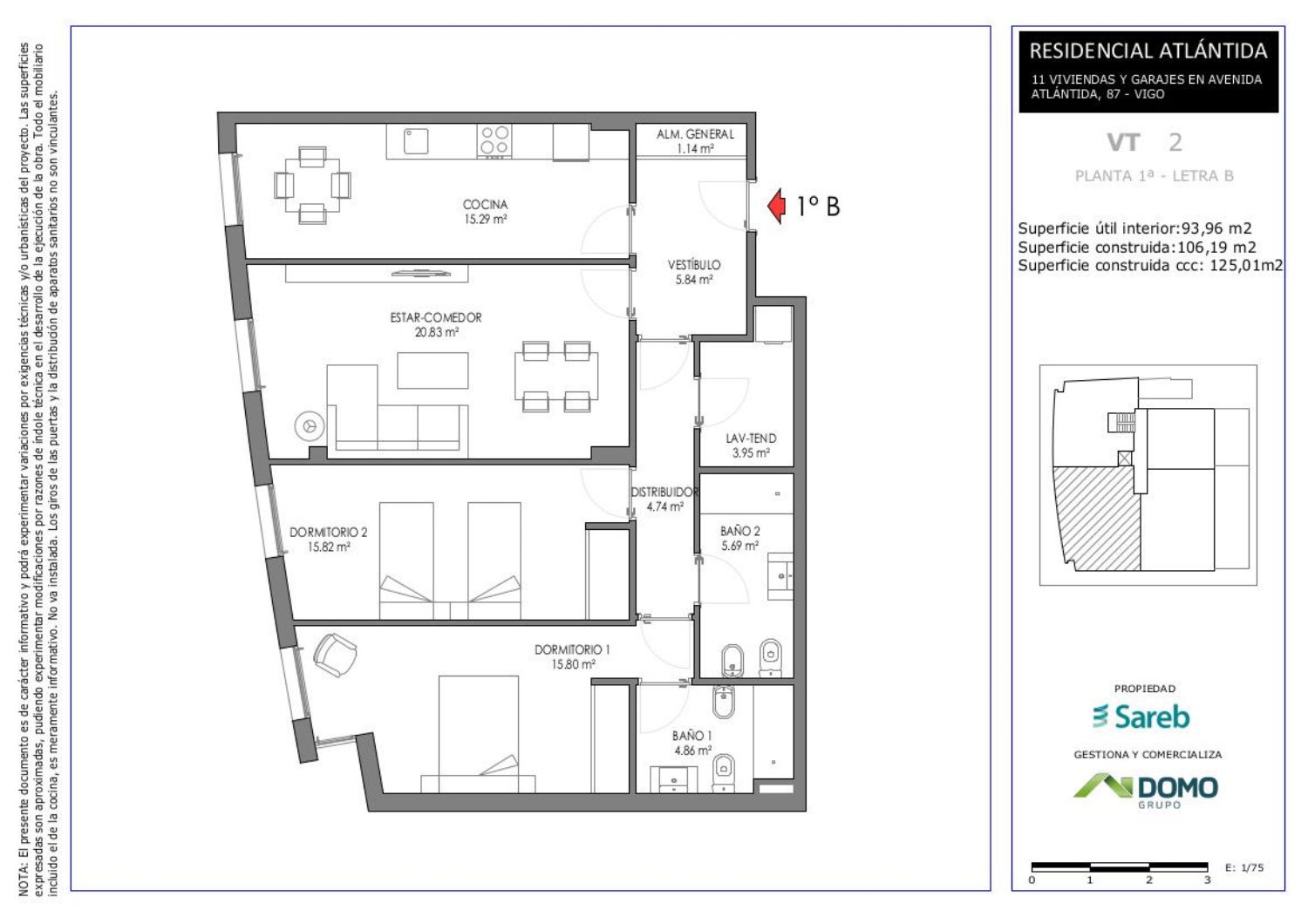 Promoción de 11 viviendas en altura situada en la Avda. Atlántida 87, zona residencial de Vigo. Se trata de 5 pisos de un dormitorio (2 de ellos tipo estudio) y 6 de dos dormitorios, a los que se suman 29 plazas de garaje y 11 trasteros. Las plazas de garaje vinculadas a las viviendas son 17, de modo que el resto se comercializan de manera independiente. Algunas de las viviendas cuentan con terraza. Los inmuebles se distribuyen en un único bloque, con planta baja, 1ª, 2ª y bajocubierta. Los trasteros y aparcamientos se sitúan en plantas baja, semisótano y sótano. En urbanización cerrada con zonas comunes ajardinadas, área de juegos, piscina y pista de pádel. Se trata de un edificio cuyas obras de construcción está previsto que se reanuden próximamente y su finalización se espera para otoño de 2023.Las 11 viviendas incorporan una plaza de garaje vinculada con un precio adicional de entre 15.400 € y 18.200 € + IVA y también un trastero por un precio adicional de entre 3.500 € y 3.900 € + IVA.La promoción se ubica en la parroquia de Alcabre, a 5 km al oeste del centro de Vigo. Se trata de una zona residencial muy tranquila cuyo punto fuerte es la proximidad a la zona de playas, en las afueras de Vigo y con acceso directo a las principales vías de comunicación por carretera con el resto de la comarca y centro de Vigo. Con todo tipo de servicios alrededor, tiene acceso directo al caso urbano por la Avenida Atlántida y líneas de autobuses que permiten acercarse al centro de forma ágil. Muy próximo se encuentra el Hotel Pazo 5* “Los Escudos”. Hay colegios públicos y privados en las proximidades y una zona de ocio con múltiples restaurantes que abarca desde la promoción hasta las playas. En cuanto a oferta comercial, a 5 minutos se encuentra el centro comercial Alcampo-Coia y a 10 minutos el Centro Gran Vía, lo mismo que el de A Laxe. Muy próximo también está el Hospital Povisa. El AVE nos acerca a Vigo en muy poco tiempo y en el Real Club Náutico de Vigo, situado a 10 minutos de la promoción, podemos comprar un billete de barco para ir a las playas de Cangas y Moaña, o a las famosas Islas Cíes.Ponte en contacto con nosotros para ampliar información o reservar vivienda.También puedes pinchar en el enlace de nuestra página Web y dejarnos tus datos, para ponernos en contacto contigo.