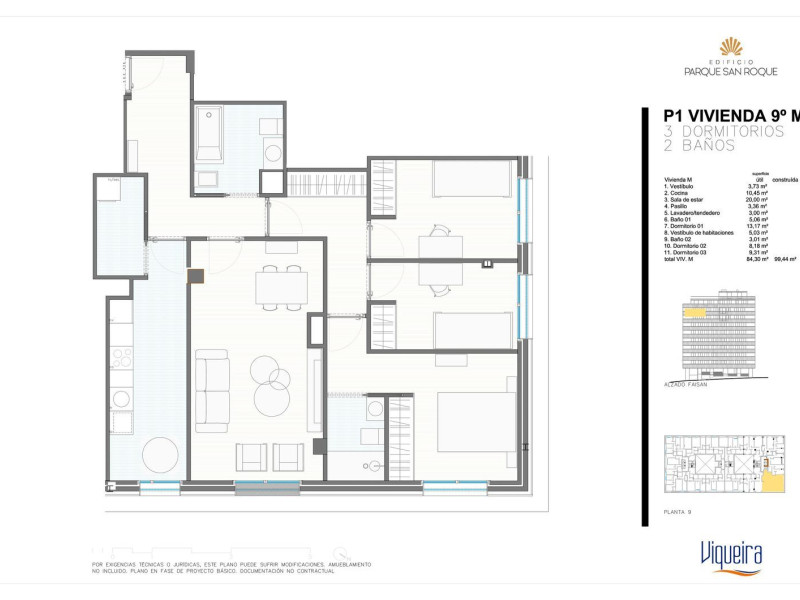 El Edificio Parque San Roque es una promoción de obra nueva terminada de 136 viviendas de 2, 3 y 4 dormitorios distribuidos en 3 portales resueltos de forma escalonada, de 10 plantas cada uno, que Viqueira llevó a cabo en el popular barrio vigués de San Roque, sobre una parcela de 1.508 m².El edificio está situado junto a una zona verde ajardinada de alrededor de 5.000 m² que aporta al proyecto un gran valor añadido muy apreciado por todos aquellos que quieran vivir en la ciudad y aprecian residir en una zona despejada, con un área de esparcimiento en el que tanto pequeños como mayores podrán relajarse charlando, jugando o simplemente pasando el tiempo en un lugar abierto y tranquilo dentro de la ciudad.Destaca su proximidad a la Finca San Roque, lugar donde se encuentra el pazo más antiguo de la ciudad de Vigo, al centro de salud de La Doblada y su ubicación preferente para las comunicaciones con accesos prácticamente inmediatos a la Avenida de Madrid y Avenida de Antonio Palacios.