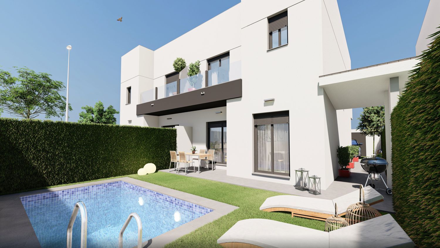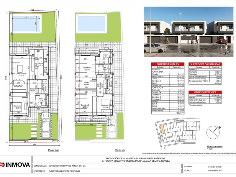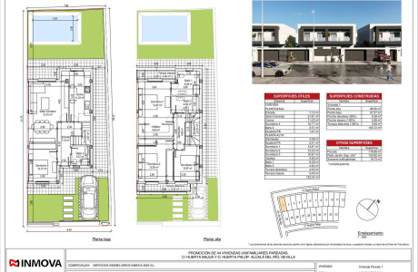 NUEVA PROMOCIÓN DE 44 PAREADAS con unos 180 m2 de parcela y PISCINA cada vivienda, situada en la mejor zona de expansión y consolidada de Alcalá del Río, cerca de colegio y Mercadona, con una ubicación privilegiada cerca de Sevilla capital y con dos accesos muy fluidos de circulación que ofrecen una combinación perfecta de tranquilidad y cercanía.Las viviendas son de diseño moderno y exclusivo, equipadas con videoportero, aerotermia, y puerta de entrada acorazada, disponen de 4 habitaciones (incluida una principal en planta baja), 3 baños, 2 terrazas con cristal y más de 100 m2 de zona exterior, donde se ubica la piscina con luces led, para disfrutar con la familia. Viviendas diseñadas pensando en tu comodidad y caracterizadas por su cuidada estética y por la calidad de sus excelentes acabados, poniendo especial atención en cada detalle para que vivas satisfecho y orgulloso en tu nuevo hogar.