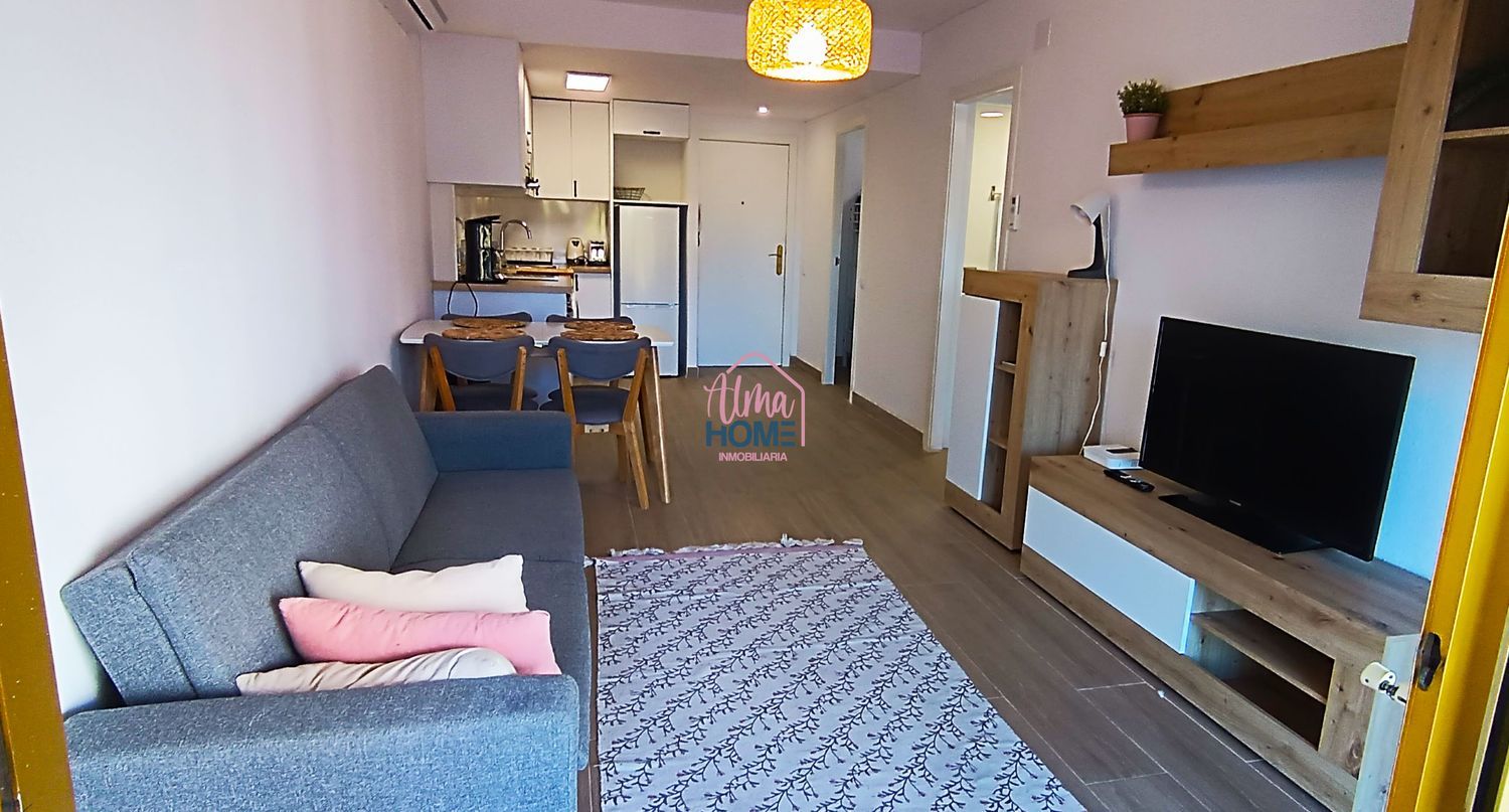 Propiedad perfecta para obtener rendimiento, con Licencia Turística. Apartamento de 57m2, ubicada en la zona turística de Salou. Totalmente reformada, desde instalaciones (luz y agua), suelo, puertas, cocina, baño, armario y muebles. Se distribuye en cocina abierta al salón, desde el cual a la terraza que comunica con la habitación de matrimonio, a la habitación camarote, con litera de cama 135cm, baño y habitación de matrimonio. La terraza da a la calle principal, bastante amplia con una mesa grande de manera y mueble. Aire acondicionado con bomba de calor. Este apartamento se vende totalmente equipado y amueblado. Beneficios demostrables del alquiler turístico. Zona comunitaria con parque infantil, zonas verdes, y dos piscinas. Edificio con ascensor.