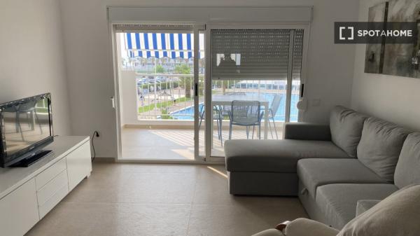 Este espacioso apartamento de 4 dormitorios en El Perellonet, Valencia, se entrega completamente amueblado y cuenta con comodidades modernas como gas natural para calentar el agua, cocina equipada con lavavajillas y horno, y acceso a servicios compartidos como piscina y aparcamiento. El apartamento también cuenta con un balcón para disfrutar de un espacio exterior privado y es ideal para profesionales, familias, estudiantes y participantes del programa Erasmus. Además, todos los gastos están incluidos, lo que aumenta la comodidad de los residentes.