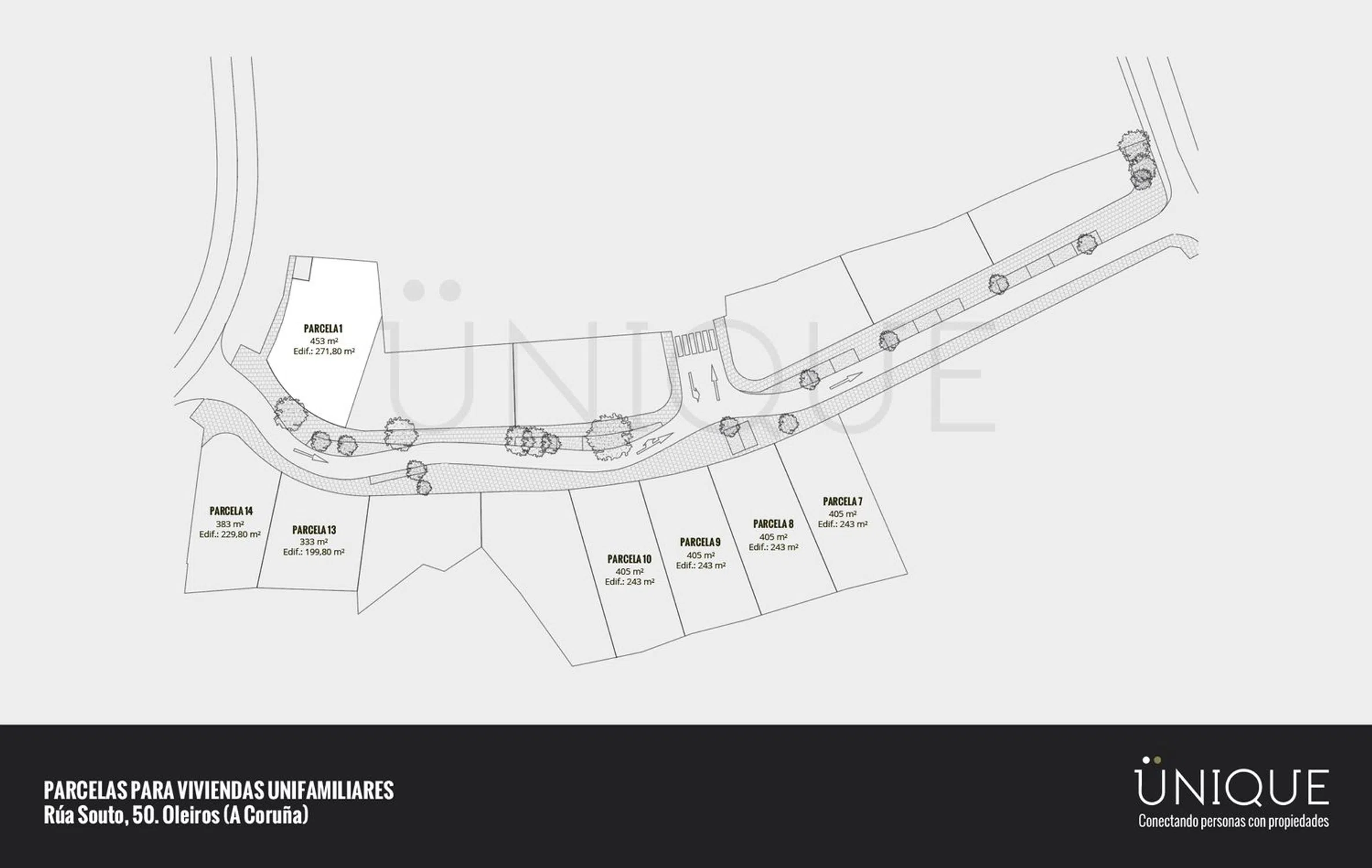 Venta de parcela residencial en Oleiros. Parcela de uso residencial para vivienda unifamiliar 2A de ciudad jardín, con una superficie total de 453 m2 en línea según la variante “A”, sobre la superficie total del Pol. Coruxo-1. Dispone de una ocupación máxima del 30%, una altura máxima de 7 metros (B+1) y una edificabilidad máxima de 0,60 m2/m2: 271,80 m2 en concreto. Situada en Rúa Souto, Oleiros. Un enclave que destaca por su tranquilidad y su entorno. Se encuentra próxima a todos los servicios como colegios, supermercados y lugares de ocio, así como a playas de la zona: a 5 minutos de la playa de Bastiagueiro, a 3 minutos de la playa de Santa Cruz y a 10 minutos de la playa de Mera y Santa Cristina. Además, se sitúa a tan solo 15 minutos del aeropuerto y a 17 minutos del centro de la ciudad de La Coruña.