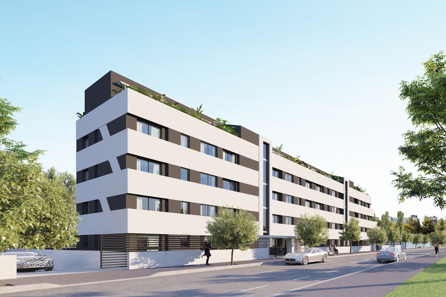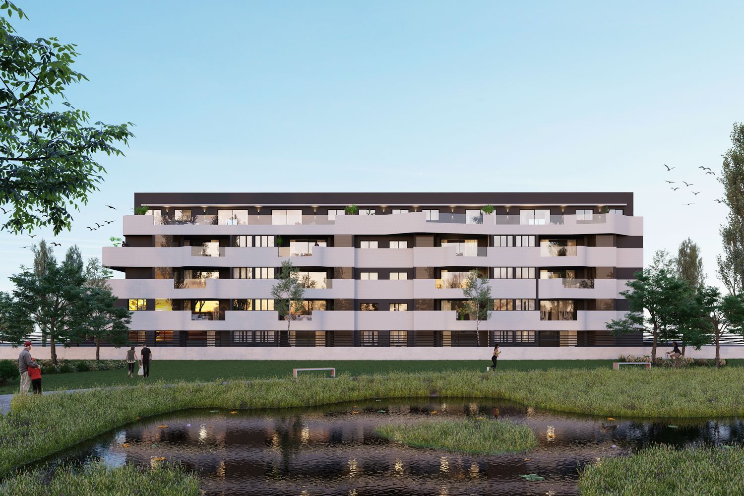 Le complexe se compose de logements modernes de 3 à 4 chambres répartis sur quatre étages, avec des options d'appartements ainsi que deux penthouses exclusifs de 2 chambres. Les rez-de-chaussée disposent de terrasses et de jardins privés, tandis que les étages comprennent de vastes terrasses de 14 m², orientées plein sud-est, offrant une vue imprenable sur les espaces verts. Deux configurations de distribution sont proposées pour s'adapter à vos besoins et à votre style de vie.