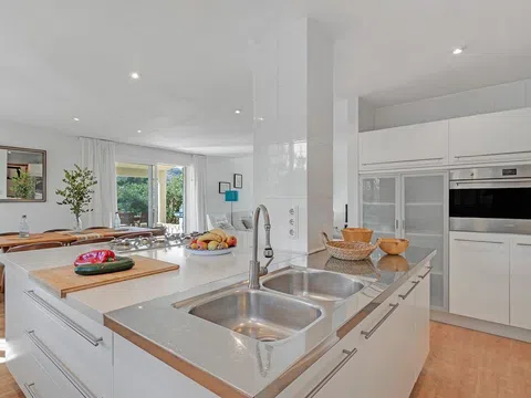 En el pintoresco pueblo de Aguas de Busot, a tan solo 22 km de Alicante y a tan solo 10 minutos en coche de la cautivadora costa, playas y puerto deportivo de El Campello, se encuentra una finca excepcional que comprende una espaciosa residencia principal con piscina privada y un edificio adicional, todo ello enclavado en 5000m2 de terreno privado exclusivo. Esta propiedad es una verdadera joya, ofreciendo una ubicacion pintoresca, vistas despejadas, absoluta privacidad y una impresionante casa principal. La residencia principal cuenta con techos altos, un total de 5 habitaciones, jardines bellamente ajardinados y una orientacion sur, creando el santuario perfecto cerca de la costa y del encantador pueblo de Aguas de Busot. Al entrar en la planta baja, un acogedor pasillo conduce a la zona de cocina-comedor-salon de planta abierta adornada con una chimenea y un techo doble que realza la sensacion de amplitud. La cocina orientada al sur cuenta con una isla practica y esta completamente equipada. Desde la zona de comedor se accede directamente a una terraza elevada y cubierta que ofrece impresionantes vistas de los jardines, el campo y mas alla. Esta planta tambien incluye dos habitaciones dobles, una amplia area de ocio con un altillo (casi 100m2) y dos cuartos de bano con ducha. Una de las habitaciones cerca de la entrada mide casi 24m2. Una naya exterior proporciona un entorno ideal para cenar al aire libre en verano, con vistas al jardin y a las montanas. Al ascender al primer piso, se descubren dos habitaciones dobles adicionales, una con bano privado y acceso a una terraza exterior cubierta con vistas al exuberante campo. Un espacioso espacio de trabajo/estudio con acceso a espacio de almacenamiento completa este nivel. La propiedad cuenta ademas con una amplia casa de piscina, con una habitacion de generosas dimensiones y espacio de ducha privado, una zona de estar de planta abierta con cocina (de 41m2), que se abre a la terraza de la piscina. Un espacio de garaje para un automovil y un taller independiente ofrecen espacios practicos adicionales. El exterior de la finca incluye una piscina de forma rectangular (35m2) con escalones romanos y una terraza de casi 100m2 que rodea la piscina. Un camino de entrada permite estacionar varios autos, mientras que los jardines ajardinados ofrecen areas designadas para relajarse y cenar, junto con un extenso huerto de frutales. Disfrute de vistas panoramicas del campo, las montanas, los jardines y vislumbres del mar a lo lejos. Esta propiedad es un refugio ideal para una familia numerosa o aquellos que valoran el espacio, con una anexo independiente y el potencial para una oficina en casa. Encarna la combinacion perfecta de lujo, comodidad y funcionalidad en una ubicacion muy solicitada.