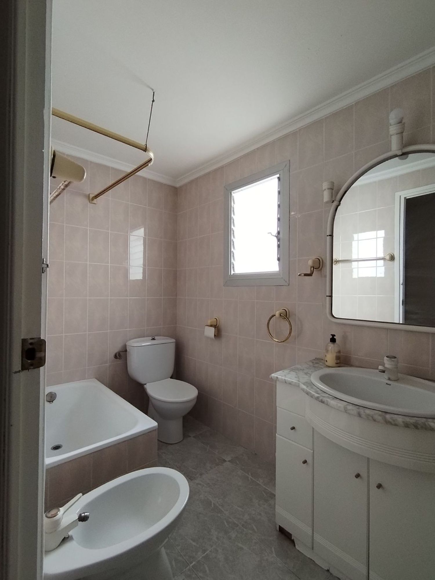 Amplio piso en venta con una encantadora terraza, ubicado en una privilegiada zona del centro de la ciudad. Esta acogedora vivienda cuenta con tres luminosos dormitorios, un cómodo salón con cocina integrada y dos baños, ideal para adaptarse a la vida moderna. Los ventanales de aluminio permiten la entrada abundante de luz natural, mientras que los suelos de gres y tarima, así como las puertas de madera, aportan calidez y estilo al hogar.