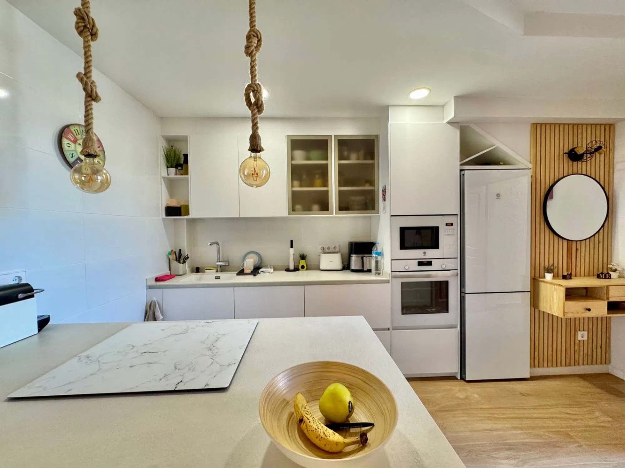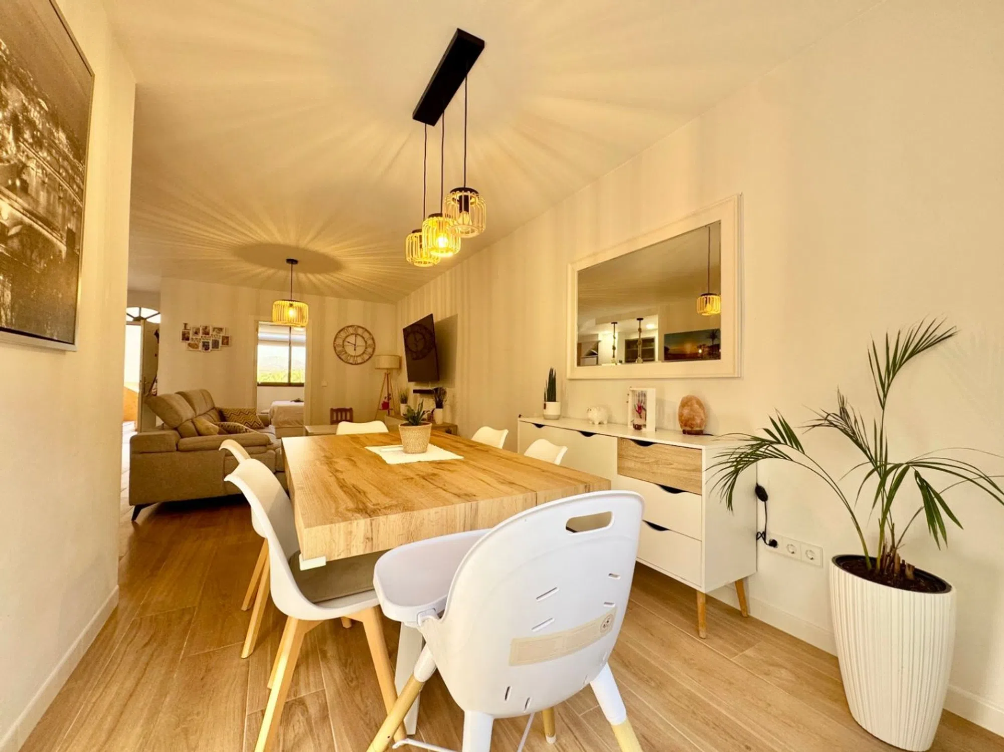 Descubre tu nuevo hogar en L'Albir Ubicado en el encantador municipio de Albir, en la provincia de Alicante, este moderno apartamento reformado es la opción ideal para aquellos que buscan un equilibrio entre confort y estilo de vida mediterráneo. Con 85 metros cuadrados de espacio construido, esta propiedad se destaca por su luminosidad y su cuidada distribución. Distribución y confort El apartamento cuenta con dos acogedoras habitaciones y dos baños, perfectos para satisfacer las necesidades de una familia o para recibir a amigos y visitas. La cocina americana se integra a la perfección con el salón, creando un ambiente abierto y confortable que invita a disfrutar de momentos inolvidables. Los amplios ventanales permiten la entrada de luz natural, y su orientación exterior ofrece vistas encantadoras que realzan la calidez del hogar. Características sobresalientes Este apartamento no solo brinda un espacio acogedor, sino también una serie de comodidades pensadas para mejorar tu calidad de vida. Equipado con aire acondicionado frío/calor, podrás disfrutar de un ambiente agradable durante todo el año. El acceso a la piscina comunitaria te permitirá relajarte en esos días soleados, mientras que su cerrado terreno comezón te brinda la privacidad y tranquilidad que mereces. Además, el apartamento destaca por contar con un jardín que añade un toque de naturaleza y frescura. La propiedad dispone de una terraza cubierta y otra descubierta, ideales para organizar barbacoas o simplemente disfrutar de la brisa mediterránea. La ducha exterior aporta ese extra de comodidad tras un chapuzón en la piscina. Un entorno excepcional L'Albir es conocido por su ambiente tranquilo y sus bellas playas, además de contar con una variada oferta de restaurantes y servicios que facilitan la vida diaria. La cultura y la naturaleza se entrelazan en esta zona, donde podrás realizar paseos al aire libre o disfrutar de eventos locales. Todo esto convierte a este apartamento no solo en un refugio, sino en una puerta de entrada a una vida plena en la costa alicantina. Con una ubicación privilegiada y características que garantizan comodidad y calidad, este apartamento en L'Albir es una opción inmejorable para quienes buscan un hogar donde disfrutar del Mediterráneo. ¡Tu nueva vida te espera!