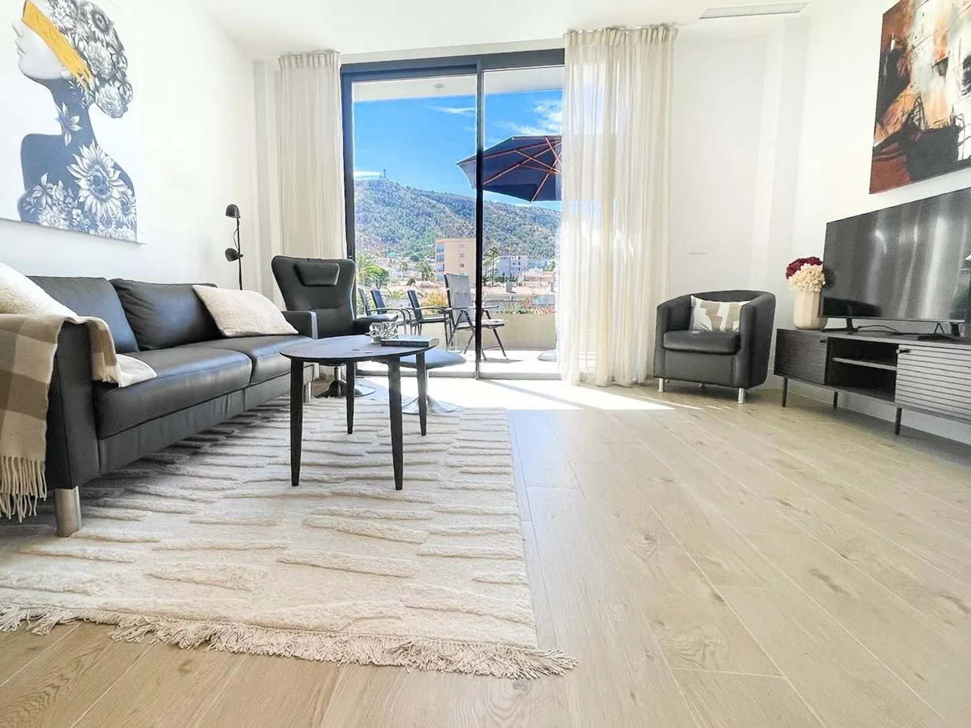 Descubra este espectacular apartamento de lujo, recientemente construido y situado a tan solo 400 metros de la hermosa Playa del Albir. Este luminoso inmueble cuenta con una amplia terraza orientada al sur que ofrece impresionantes vistas despejadas hacia Sierra Helada, ideal para disfrutar del clima mediterráneo. Con dos dormitorios confortables —uno con acceso directo a la terraza— y dos baños elegantes (uno en suite), el diseño interior es moderno y funcional. La cocina abierta se integra perfectamente, complementándose con una útil galería. Las zonas comunes son un verdadero oasis; incluyen piscina descubierta e indoor, jardines cuidados meticulosamente, gimnasio completamente equipado, sauna relajante e instalaciones para hidroterapia además de una sala polivalente perfecta para diversas actividades recreativas o eventos privados. Ubicado en pleno centro neurálgico del Albir, cercano a supermercados, paradas de bus así como restaurantes variados y farmacias, garantizan comodidad absoluta. Está incluido en el precio plaza de garaje y trastero.