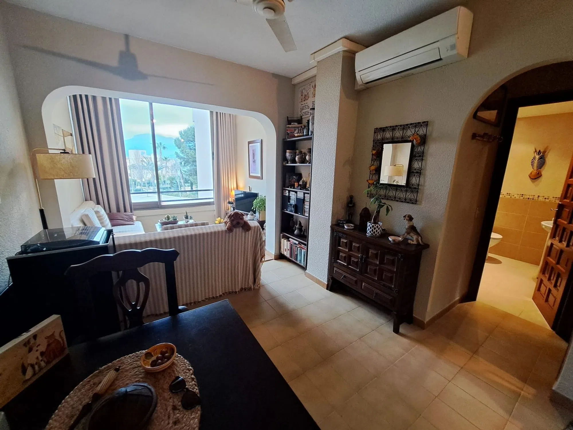 "En venta exclusiva por NOTAR. Bonito apartamento de un dormitorio cerca del centro en El Albir. Tiene cocina abierta, un baño y una terraza cerrada con bonitas vistas. Hay aire acondicionado frío/calor. También piscina comunitaria. Ubicado en la primera planta, sin ascensor. Plazas de aparcamiento en el interior de la urbanización. A mitad de camino entre la playa y la entrada al Parque Natural de Serra Gelada con su bonito paseo del Faro. A escasos 50 metros del acceso a la cala y mirador del Amerador con sus espectaculares vistas de toda la bahía de Altea. ".