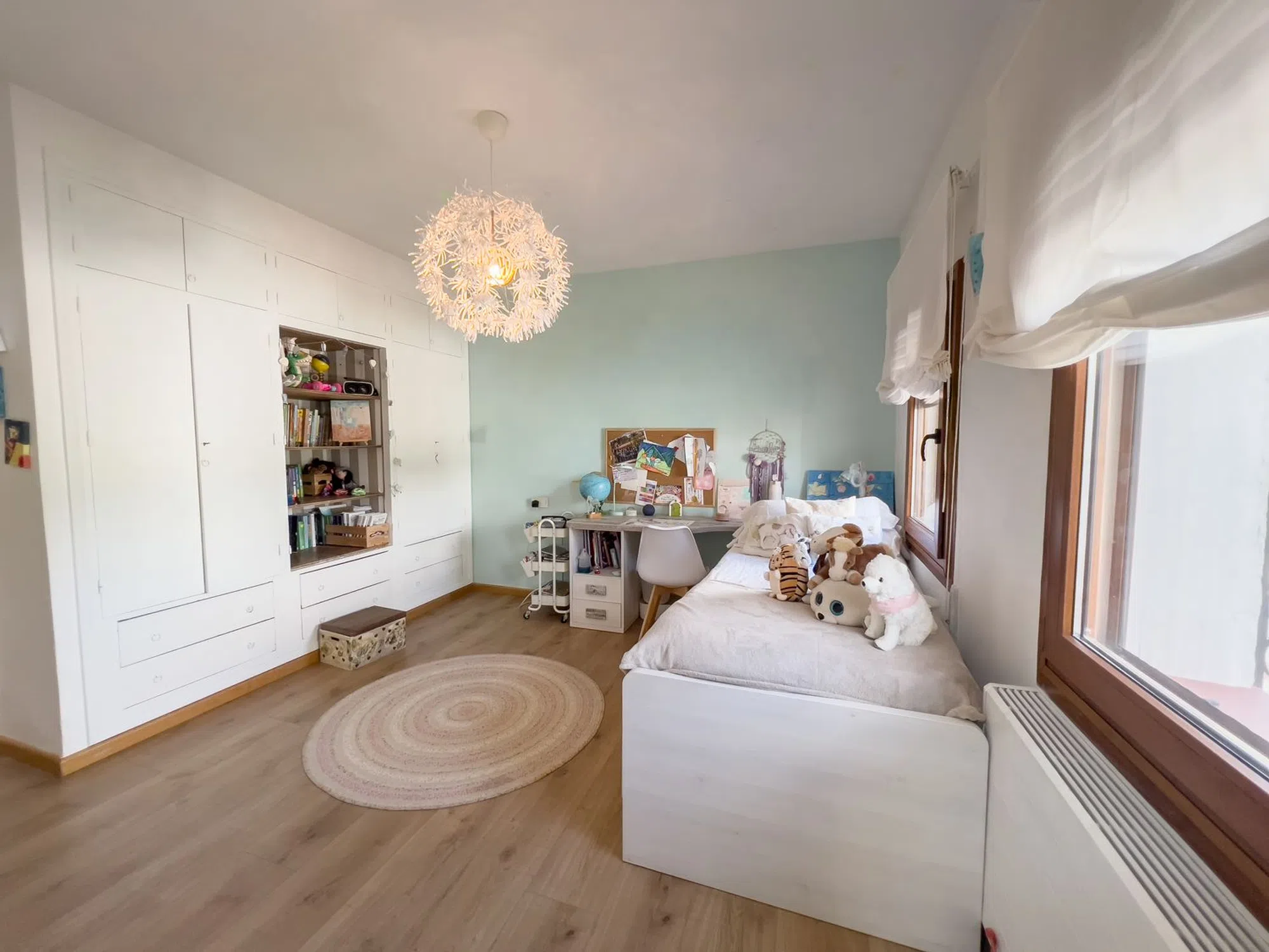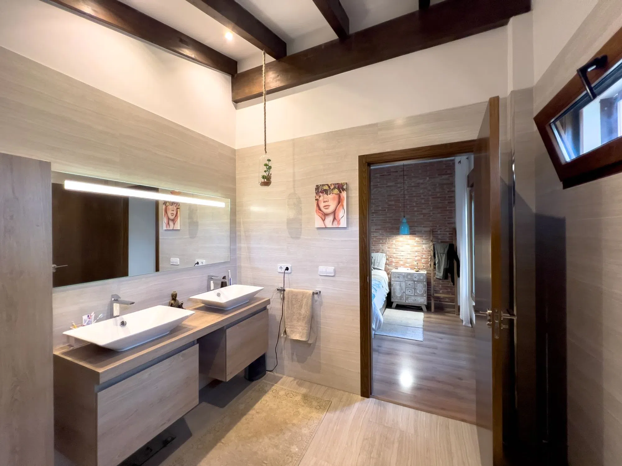 La vivienda, en una sola planta, cuenta con techos altos con vigas vistas, suelo radiante, calefacción central de gas y aire acondicionado en todas las estancias. Entre 2015 y 2021, fue completamente renovada con materiales de alta calidad.
