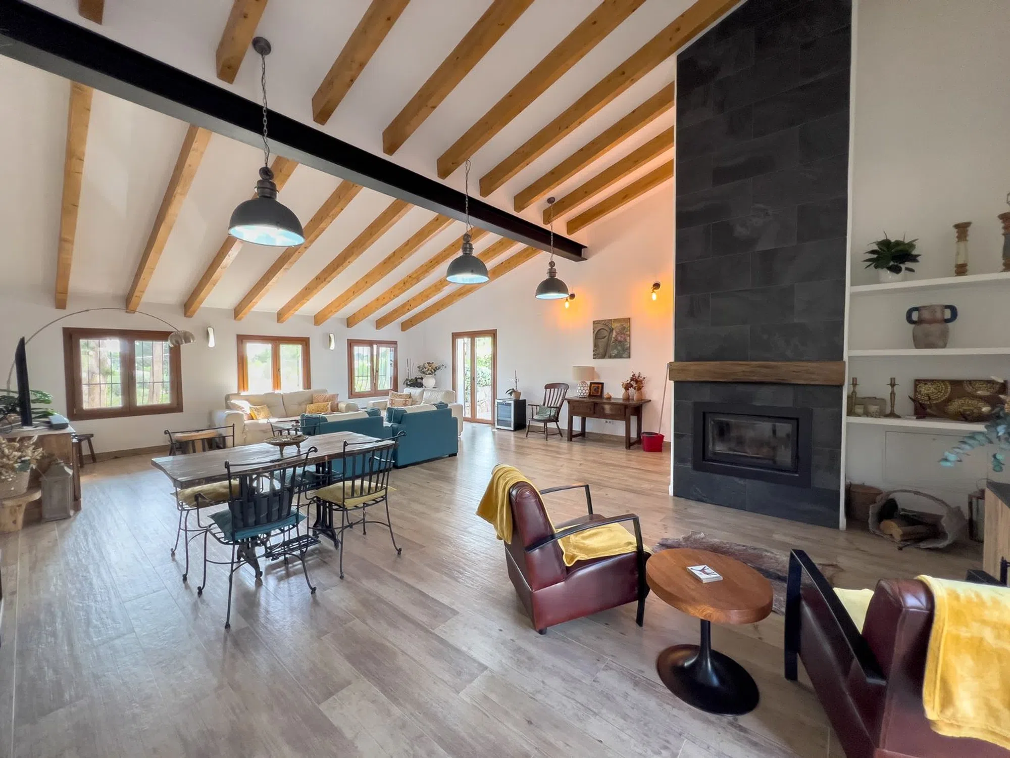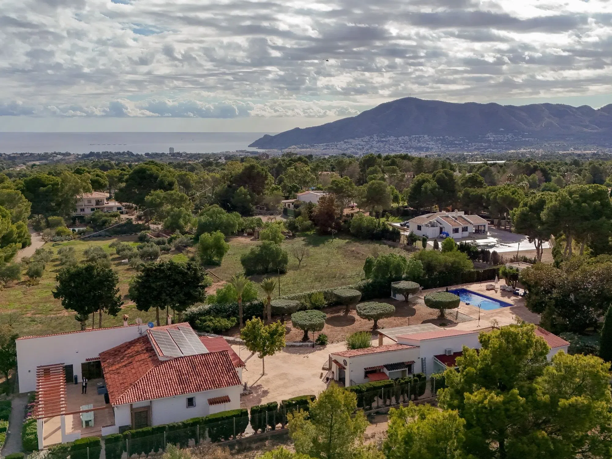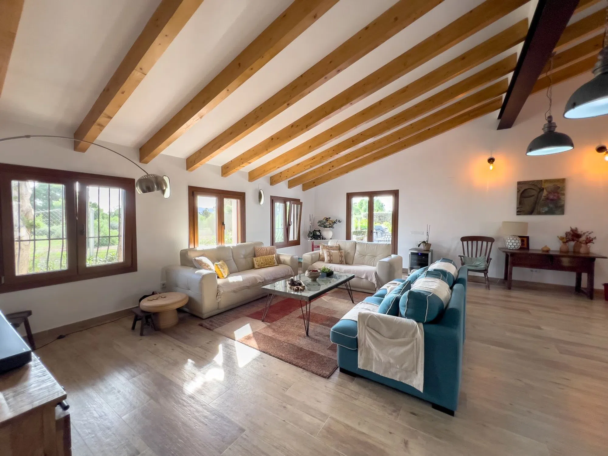 Un taller adicional puede transformarse fácilmente en casa de invitados o despacho. Gracias a su entorno natural con pinos y frutales, esta villa es ideal para quienes buscan organizar retiros o eventos privados, o simplemente vivir la tranquilidad de la Costa Blanca con estilo.