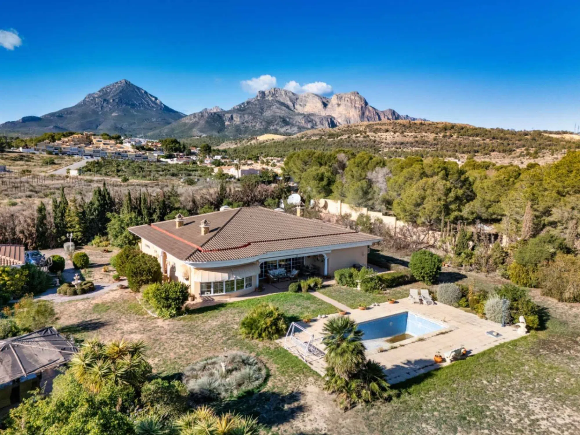 Descripción GeneralPresentamos este encantador chalet clásico ubicado en la tranquila Colonia Escandinavia, en Alfaz del Pi, una de las localidades más deseadas de la provincia de Alicante. Este refugio ofrece un diseño diaphanous e ideas espaciosas, donde cada rincón invita a disfrutar de la calma y la belleza que rodean la propiedad. Detalles de la PropiedadCon una generosa superficie construida de 430 m², esta villa se despliega sobre una vasta parcela de 2,630 m², lo que la convierte en un lugar ideal para disfrutar del sol y el aire fresco. La villa cuenta con tres espléndidas habitaciones y dos baños, cada una de ellas diseñada para maximizar la comodidad y la funcionalidad. La distribución exterior y abierta proporciona un ambiente acogedor, perfecto para vivir en armonía con la naturaleza. Además, cuenta con un apartamento de invitados con una habitacion y un baño. Características NotablesOrientación Este: Disfrute del sol matutino y de un cálido ambiente durante el día. Piscina Privada: Una refrescante piscina rodeada de jardines bien cuidados que invitan a sumergirse en la tranquilidad. Cocina Independiente: Equipado con todo lo necesario para preparar deliciosas comidas. Chimenea: Calidez y confort en los meses más frescos, creando un espacio acogedor para compartir momentos inolvidables. Aire Acondicionado: Mantenga una temperatura agradable durante todo el año. Cubierta y Terraza Abierta: Espacios al aire libre perfectos para disfrutar de comidas y momentos de relax. Garaje y Estacionamiento: Comodidad y seguridad para sus vehículos. Puerta de Seguridad: Garantiza la privacidad y tranquilidad que busca en su nuevo hogar. Doble Acristalamiento: Aislamiento y confort acústico, asegurando un entorno sereno. Entorno y UbicaciónLa Colonia Escandinavia se caracteriza por su ambiente pacífico y sus vistas impresionantes, ideal para quienes buscan alejarse del bullicio de la ciudad. A solo unos minutos de Alfaz del Pi, podrá disfrutar de una variedad de servicios, restaurantes y actividades culturales, mientras mantiene la distancia necesaria para relajarse en la tranquilidad de su hogar. Descubra el placer de vivir en esta magnífica villa, donde la comodidad se encuentra con la belleza del entorno. Sin duda, un refugio ideal que espera a ser habitado.