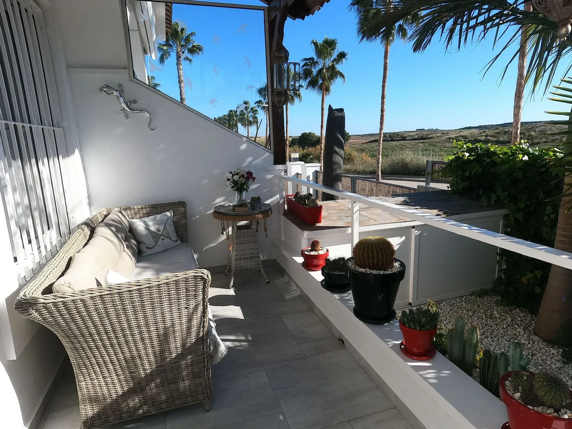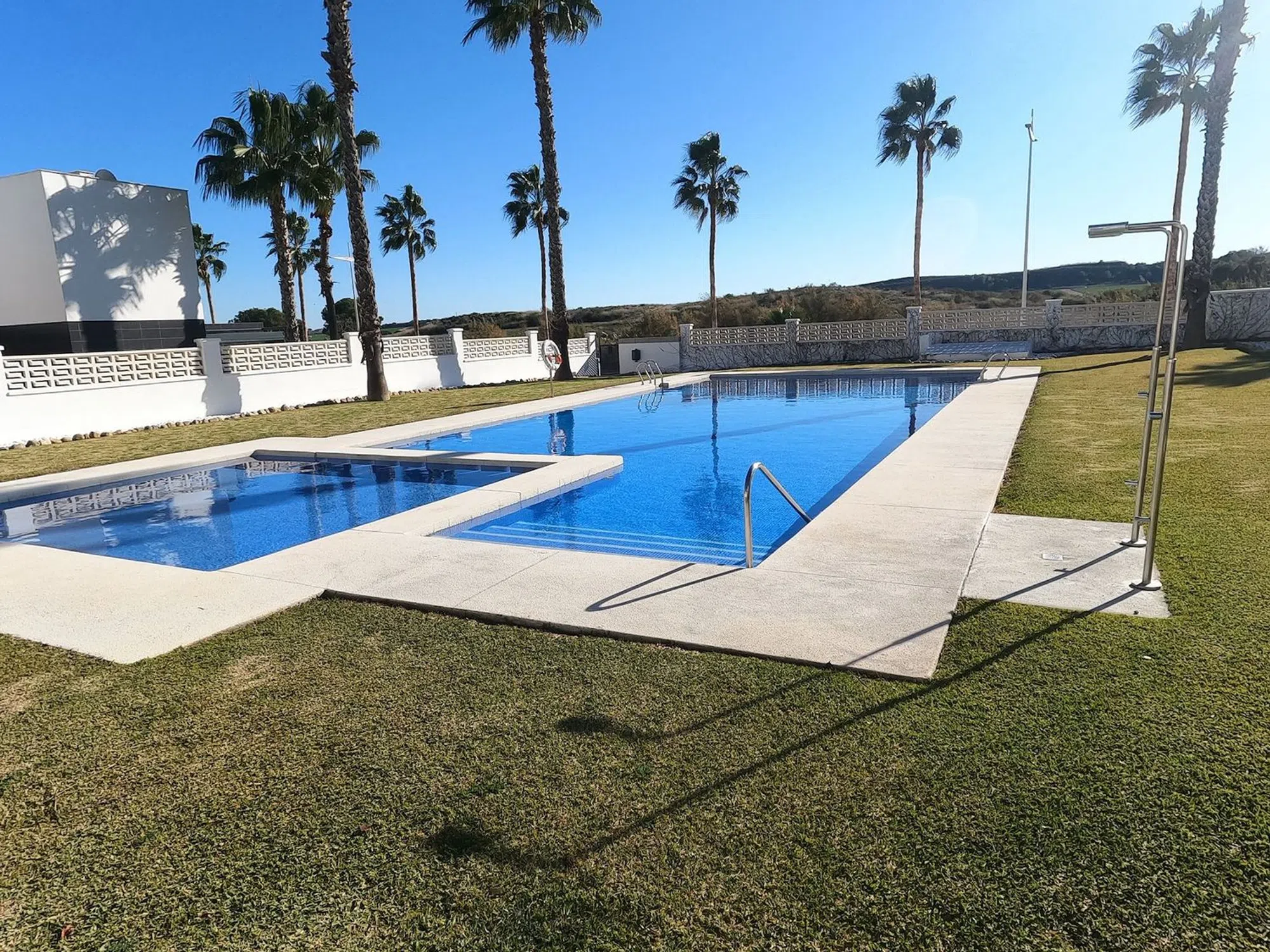 Se vende: una encantadora villa de reventa ubicada en la popular zona de Algorfa, dentro de la codiciada comunidad de La Finca Golf. Esta casa ofrece un espacio interno de 90 m², cuidadosamente distribuido para brindar una vida cómoda para familias o aquellos que buscan un refugio tranquilo. La villa cuenta con tres amplios dormitorios y dos baños modernos. Hay una sala de sol adicional con cortinas de cristal en el solárium. Disfrute de una luminosa sala de estar con orientación sur que llena las habitaciones de luz natural, creando un ambiente acogedor durante todo el día. La casa está parcialmente amueblada, lo que le permite mudarse con facilidad y agregar su toque personal. 2 de los dormitorios y un baño se encuentran en la planta baja, y el dormitorio principal y el baño con ducha están en el nivel superior. Salga para disfrutar de impresionantes vistas al campo o disfrute de una tarde relajante en la gran piscina comunitaria a pocos pasos de distancia. Los entusiastas del golf apreciarán el campo de golf bellamente mantenido justo en la puerta de su casa, así como el estilo de vida vibrante y relajante que ofrece la zona. La Finca Golf es conocida por su entorno tranquilo, sus exuberantes paisajes y su fácil acceso a una variedad de servicios locales, que incluyen tiendas, restaurantes y servicios, todo a poca distancia de la villa. Esta propiedad se anuncia con orgullo y recomendamos encarecidamente una visita. CARACTERÍSTICAS PRINCIPALES: AIRE ACONDICIONADO EN TODAS LAS HABITACIONES COCINA Y BAÑOS MODERNOS NUEVOS 7 PANELES SOLARES SALA DE SOL EN EL SOLARIUM VENTANAS NUEVAS BBQ TERRAZA ELEVADA ORIENTACIÓN SUR 2 PISCINAS COMUNITARIAS PÉRGOLA DE JARDÍN CON CUBIERTA ELÉCTRICA Gastos de comunidad 344 al año Suma 250 al año.