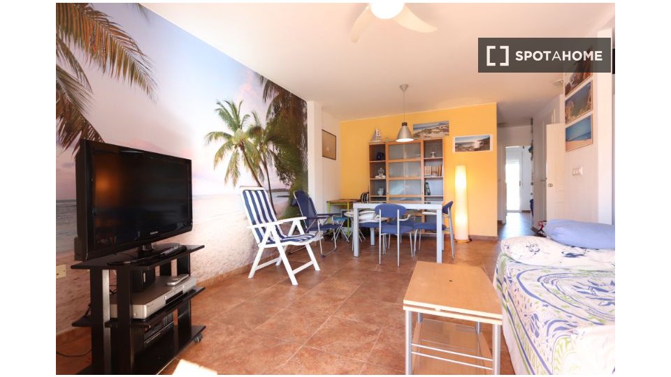 Ce superbe appartement meublé de 2 chambres est disponible à la location à Dénia. Il comprend des équipements modernes, notamment une cuisine fonctionnelle avec four et un balcon offrant un espace extérieur agréable. Un parking est à votre disposition et vous aurez accès à la piscine. Veuillez noter cependant qu'il n'y a pas de connexion internet dans l'appartement.