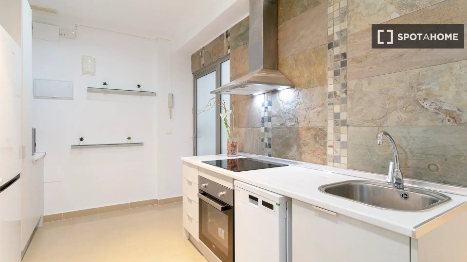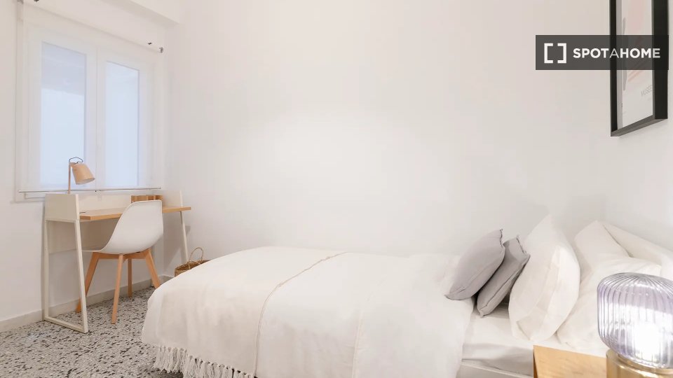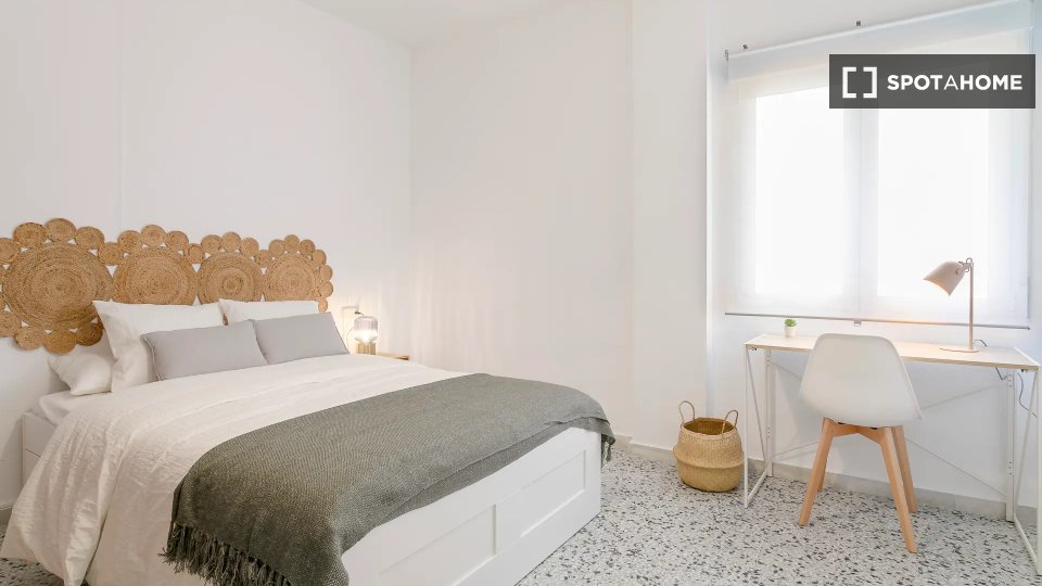 Cette chambre joliment meublée est disponible dans un appartement partagé de 5 chambres à Alicante. Conçue pour votre confort, la chambre est entièrement meublée et l'appartement est équipé d'une climatisation centrale et d'une cuisine entièrement équipée.