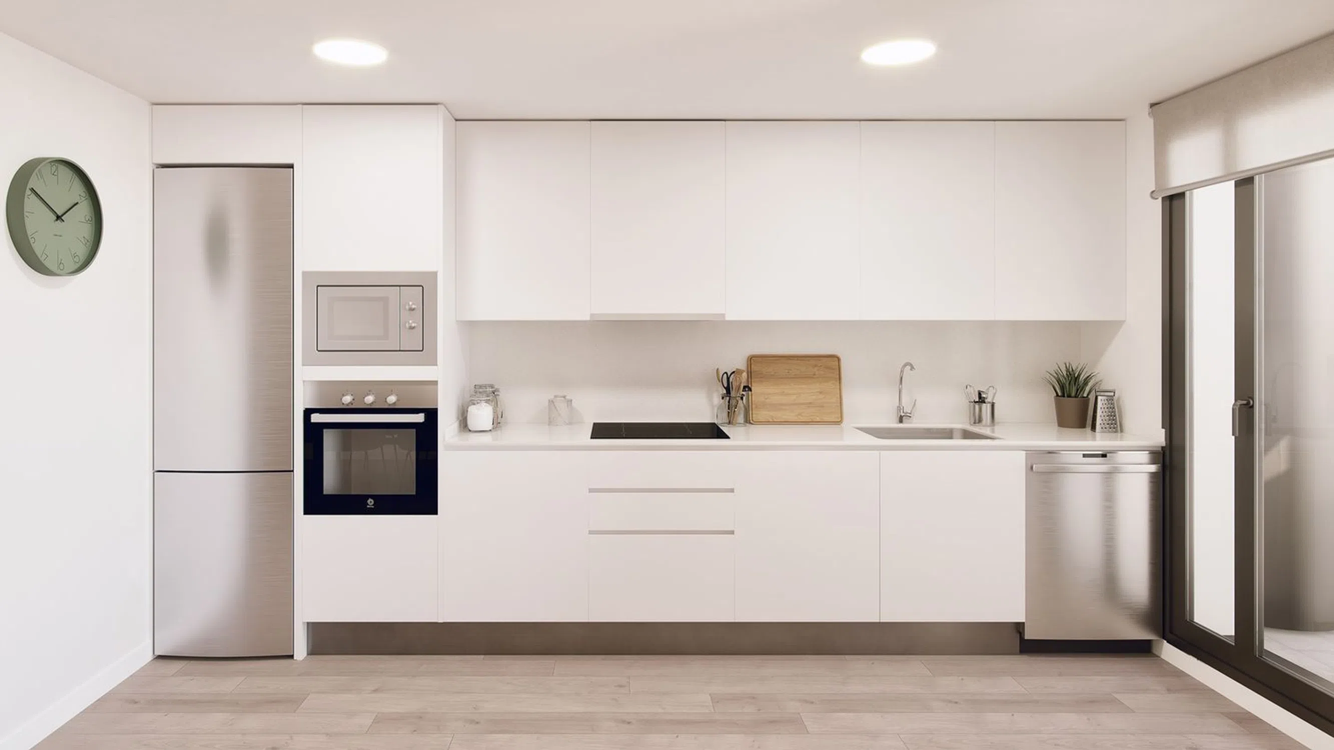 L'architecture contemporaine des logements met en avant des espaces extérieurs permettant de profiter pleinement de la lumière naturelle, avec une ventilation croisée dans la plupart des résidences. Les opportunités de personnalisation sont nombreuses : choisissez parmi les finitions de cuisine, plans de travail ou encore les revêtements de sols et de salles de bains, tous réalisés avec des matériaux de première qualité. Chaque appartement est doté de placards intégrés, de portes laquées blanches et de cuisines entièrement équipées avec plaques vitrocéramiques, hotte, four encastré et micro-ondes.