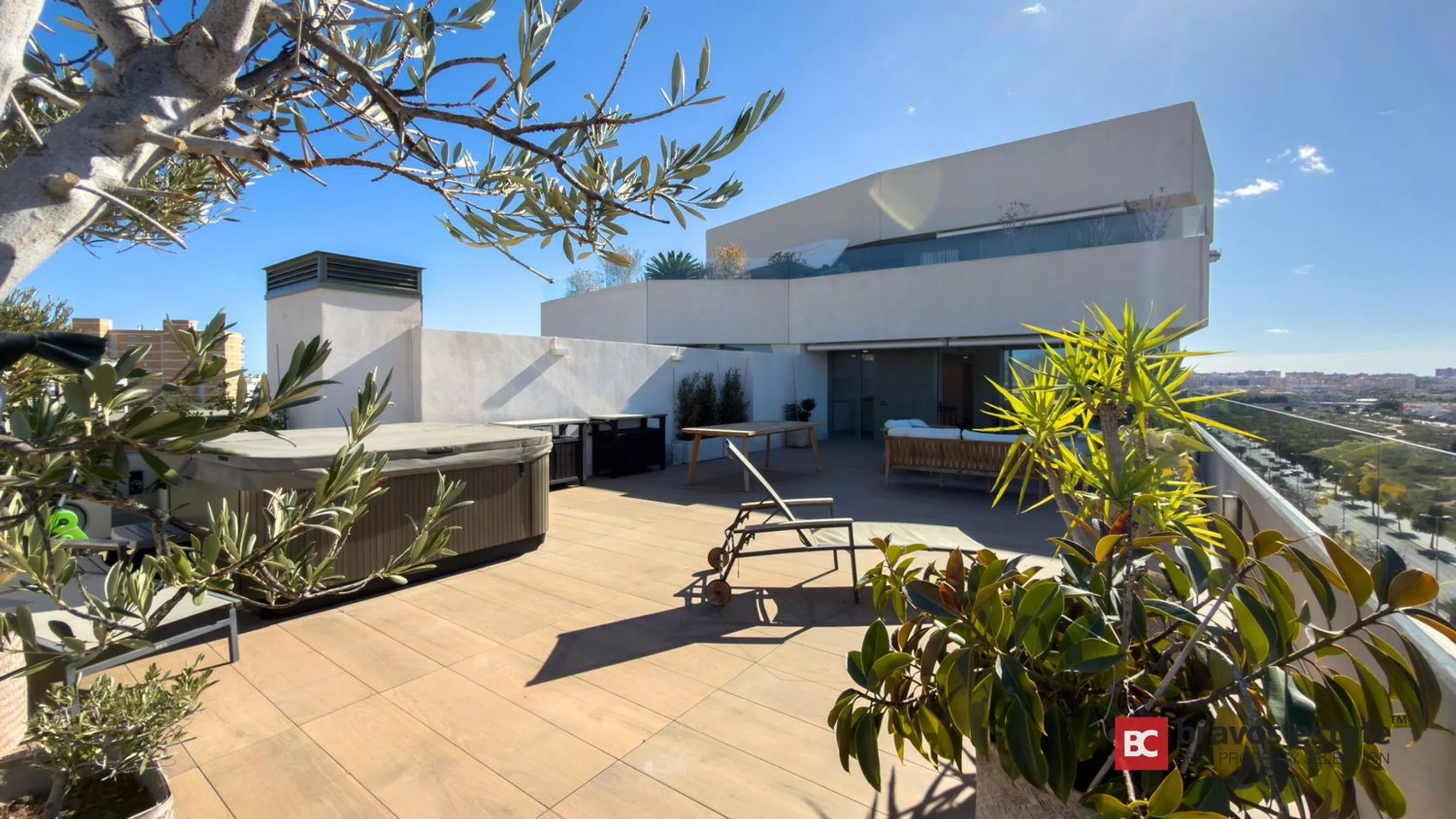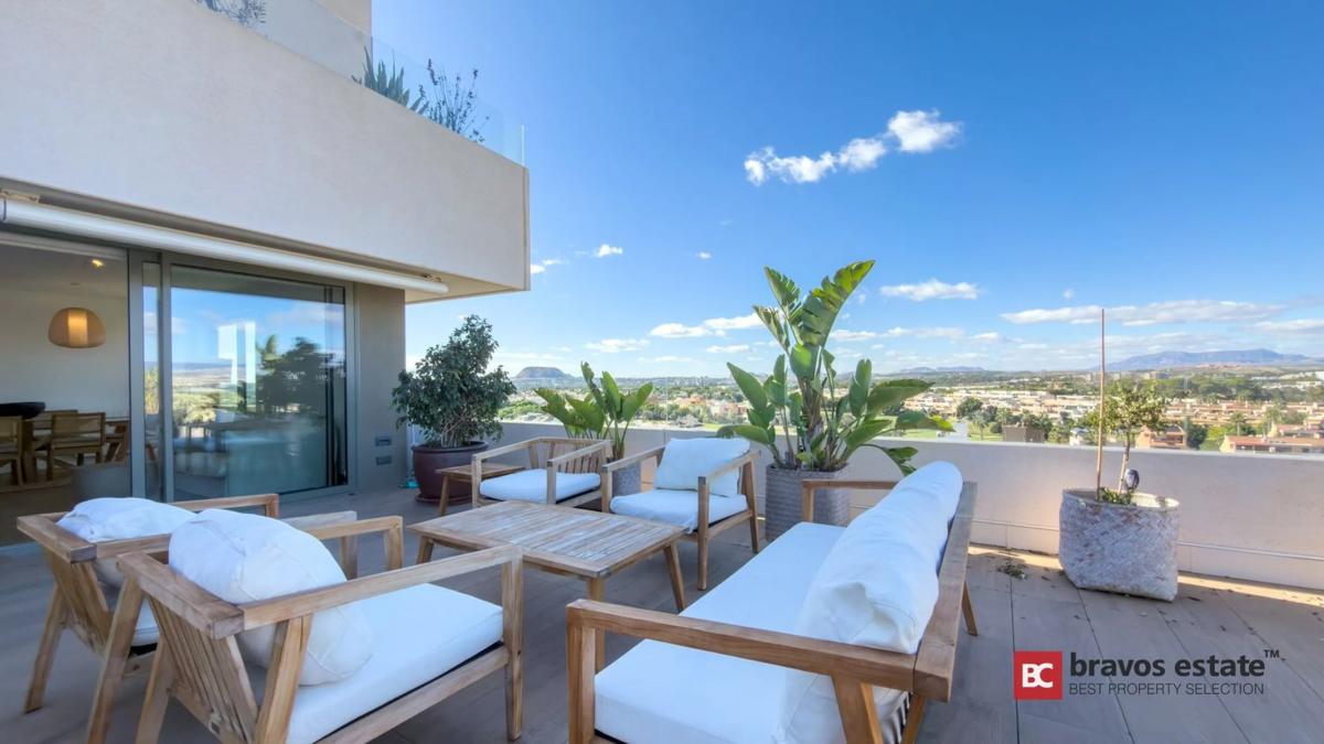 Este impresionante ático de segunda mano se encuentra en una de las comunidades residenciales más destacadas de PAU 5, Alicante, a pocos minutos andando de la Playa de San Juan. Ofrece amplitud, privacidad y un estilo de vida al aire libre único gracias a su espectacular terraza de 100 m². La vivienda dispone de un salón-comedor muy luminoso con cocina semiabierta y acceso directo a la terraza principal. Tiene tres dormitorios con armarios empotrados. El dormitorio principal cuenta con baño en suite y los dos dormitorios adicionales comparten un segundo baño completo. Además, incluye una terraza secundaria de 10 m² con vistas despejadas al campo de golf, ideal para disfrutar del atardecer. La gran terraza principal de 100 m² es uno de los puntos más atractivos del ático. Está equipada con jacuzzi, zona de barbacoa y espacio suficiente para comedor exterior, solárium y área chill-out. Ofrece vistas abiertas hacia la montaña y el entorno de Alicante Golf, con total privacidad y aprovechamiento del clima mediterráneo durante todo el año. El inmueble está listo para entrar a vivir. Cuenta con aire acondicionado frío/calor, suelo de gres porcelánico, cocina equipada con electrodomésticos de alta gama, armarios empotrados modernos y un excelente aislamiento térmico y acústico. La vivienda posee certificación energética A. La urbanización es una de las más completas y prestigiosas de la zona. Incluye varias piscinas exteriores, calle de nado climatada, jacuzzi, sauna, gimnasio, pista de pádel, amplias zonas verdes, parque infantil, club social, salas de reuniones y sala de juegos para niños. El precio incluye una plaza de garaje con acceso directo y un trastero. La ubicación es inmejorable dentro de PAU 5: a pocos minutos de la Playa de San Juan, Alicante Golf, colegios internacionales, supermercados, cafeterías, restaurantes y transporte público (tranvía y autobús). La zona cuenta también con carriles bici, áreas verdes y clubes deportivos. Este ático de segunda mano destaca como una de las mejores oportunidades disponibles en PAU 5 por su espacio exterior, comodidad y ubicación privilegiada.
