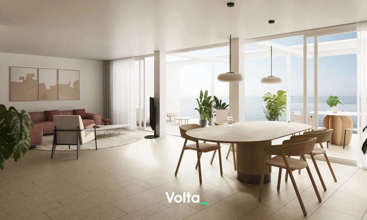 Vivienda Mirador by Volta_ Un ático diseñado para quienes buscan vivir con calma, luz y horizonte. Situado en calle Virgen del Socorro, frente a la Playa del Postiguet, en una de las zonas más privilegiadas de Alicante: sin edificios delante, sin interrupciones, solo el mar abriéndose frente a la casa. Desde el salón, desde la terraza, incluso desde la cocina: el Mediterráneo está siempre presente. La zona de día se organiza como un espacio fluido que integra salón, comedor y cocina con isla de piedra. La luz recorre la vivienda y la terraza se convierte en una estancia más, perfecta para desayunos al amanecer, sobremesas largas y noches de verano mirando el horizonte. En la parte más privada, los dormitorios se orientan hacia el silencio de la montaña. La suite principal incorpora vestidor a medida y un baño tipo spa, con piedra continua, ducha amplia y una iluminación cálida que invita a empezar el día con intención. Materiales & Confort (filosofía Volta_) Madera natural de poro abierto y piedra auténtica Carpinterías de altas prestaciones con control solar Iluminación diseñada por escenas, sin estridencias Almacenaje integrado para un orden sin esfuerzo Distribución amplia y de circulaciones fluidas Distribución Vivienda actualmente en fase de obra. Las imágenes y descripciones corresponden al proyecto final diseñado por Volta_. Ático con terraza mirador frente al mar 234 m² 4 habitaciones 2 baños 1 aseo Cocina integrada con isla Piscina comunitaria en la cubierta del edificio Plaza de Parking en el mismo edificio Ubicación Frente a la Playa del Postiguet, con acceso directo a la playa. A un paseo del centro, del Castillo de Santa Bárbara, del Mercado Central y de las zonas más vivas de la ciudad. Bien conectado con transporte público y servicios, sin renunciar a la calma y al paisaje. Para vivir. Para celebrar. Para invertir. Un hogar escaso por ubicación, diseño y relación directa con el mar. Valor de uso hoy. Valor patrimonial mañana. *El presente documento tiene carácter meramente informativo, orientativo y no vinculante, por lo que no supone información contractual alguna, siendo su uso estrictamente comercial*.