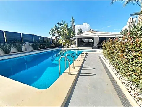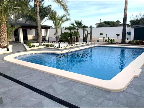 Bienvenido a este exclusivo chalet de lujo, una residencia diseñada para ofrecer una experiencia de vida única, donde la comodidad, la tecnología avanzada y la elegancia se combinan a la perfección. Situado en una tranquila zona residencial, a pocos minutos del hospital de Alicante, esta propiedad destaca por su sofisticación, funcionalidad y un entorno excepcional. La vivienda, emplazada en una parcela de 980 m² con 360 m² construidos,se encuentra completamente domotizada, permitiendo un control integral de todas las instalaciones desde el móvil. Incluye un sistema "zone" que ajusta la temperatura individualmente en cada habitación, garantizando el confort en cada espacio del hogar. En cuanto a la distribución de la vivienda, encontramos una primera planta de 125 m² con una cocina moderna y completamente equipada con electrodomésticos de alta gama que dispone de una isla central perfecta para desayunos o reuniones informales, con un diseño que equilibra funcionalidad y estética. Un amplio salón con abundante luz natural, ideal para compartir momentos en familia y un espacio versátil que puede ser utilizado como oficina o habitación adicional, además de un baño completo. En su segunda planta también de 125 m², encontramos cuatro habitaciones espaciosas y luminosas, cada una de ellas con armarios empotrados de gran capacidad. La suite principal incluye un baño privado y un gran tocador, creando un refugio de privacidad y confort, también encontramos un segundo baño completo, situado estratégicamente, dando servicio a las otras tres habitaciones de la planta. En su planta inferior hay una lujosa sala de cine equipada con proyector y barra de sonido, además de una ventana al exterior para mayor versatilidad. Un enorme trastero funcional para almacenamiento adicional. El exterior de esta propiedad es tan impresionante como su interior con una piscina de gran tamaño con cómodos escalones de acceso, rodeada de un cuidado jardín con elementos paisajísticos y una fuente decorativa que aporta serenidad al entorno. La espectacular casa de la barbacoa de 65 m² es ideal para celebraciones al aire libre, con un cuarto de baño completo junto a la piscina para mayor comodidad. Su garaje de 50 m², con capacidad para varios vehículos y espacio adicional para almacenamiento. Detalles adicionales: Sistema de alarma perimetral para una seguridad óptima, toldos eléctricos en todas las ventanas para mayor comodidad y protección solar. Todas sus infraestructuras han sido renovadas hace cinco años, incluyendo la red de alcantarillado, garantizando modernidad y eficiencia. Incluye radiadores de gas en todas las estancias y aire acondicionado por conductos, además de splits independientes, incluso en el garaje, para asegurar el máximo confort durante todo el año. Estación de carga para coche eléctrico y puntos de enchufe distribuidos por el jardín, que ofrecen gran funcionalidad en el exterior. Cada rincón de este chalet ha sido cuidadosamente diseñado para crear un hogar moderno, funcional y elegante en un entorno tranquilo y exclusivo. Este chalet se vende completamente equipado, incluyendo electrodomésticos de alta gama y pequeños aparatos, listo para entrar a vivir. Es una opción ideal para quienes buscan una vivienda de lujo que ofrezca comodidad, tecnología y un estilo de vida excepcional en un ambiente inigualable.