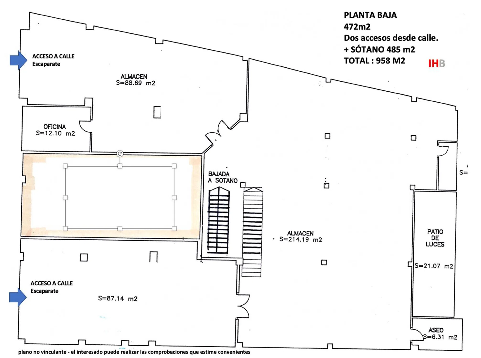 Oportunidad local en zona céntrica de Alicante con accesos independientes. Dispone de garaje privado para vehículos, almacén (carga/descarga) Oficinas o tienda en planta baja Entreplanta con accesos independientes o desde interior. - - - - - - - - - - - - - - - - - - - - - - - - - TOTAL INMUEBLE LOCAL 1.366 m2 Registrales/c - - - - - - - - - - - - - - - - - - - - - - - - - Planta baja : 471 m2 Sótano : 485 m2 914 m2 Entreplanta D : 226 m2 Entreplanta I : 226 m2 452 m2 - - - - - - - - - - - - - - - - - - - - - - - - - IHB Iduss Broker Locales comerciales Alicante - - - - - - - - - - - - - - - - - - - - - - - - -.