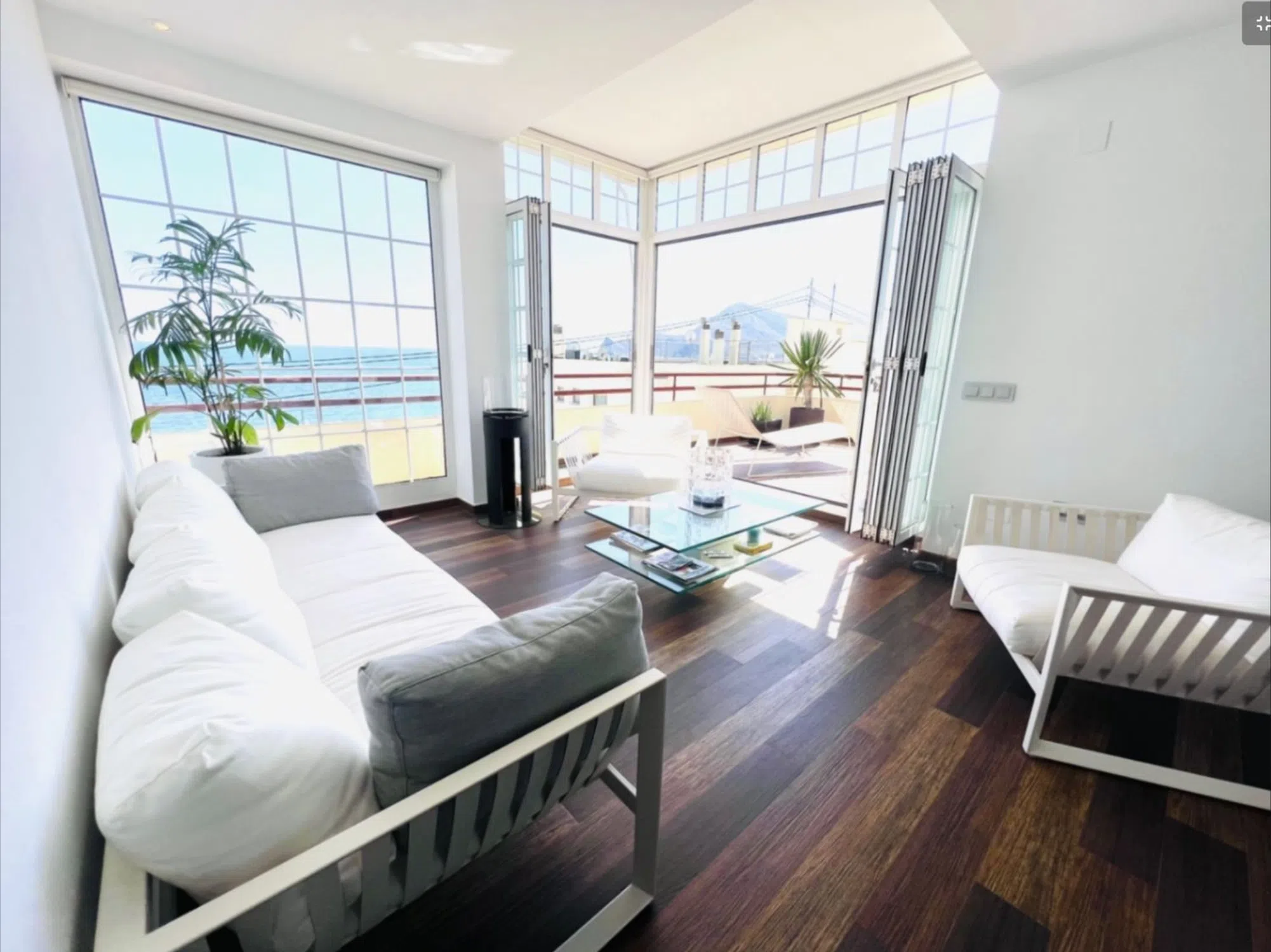 Fantástico apartamento situado a escasos metros de la playa de La Roda, en Altea. La vivienda ha sido reformada con un elegante estilo moderno y mediterráneo, destacando por su luminosidad y sus amplios ventanales que conectan el salón y la cocina con una magnífica terraza orientada al sur, desde la que se disfrutan agradables vistas al mar y sol durante todo el día. El apartamento se distribuye en dos plantas. En la planta principal encontramos dos dormitorios, un amplio salón-comedor, una gran cocina americana totalmente equipada y acceso directo a la espaciosa terraza. Una escalera de madera natural conduce a la planta superior tipo loft, que ofrece dos espacios versátiles ideales como dormitorios adicionales, despacho o zona de ocio, además de un baño completo. La vivienda dispone de aire acondicionado por conductos y se ubica en un edificio con ascensor. Garaje opcional por 20.000 € en el edificio colindante. Una propiedad ideal para disfrutar del estilo de vida mediterráneo junto al mar, tanto como residencia habitual como inversión. [IW].