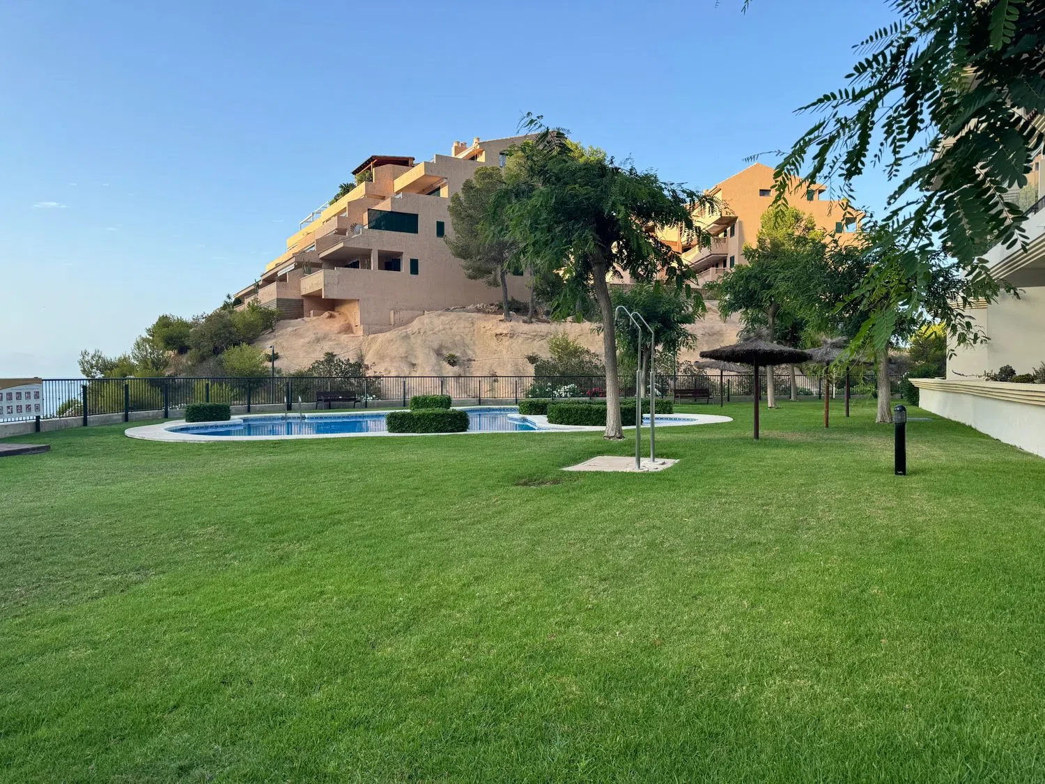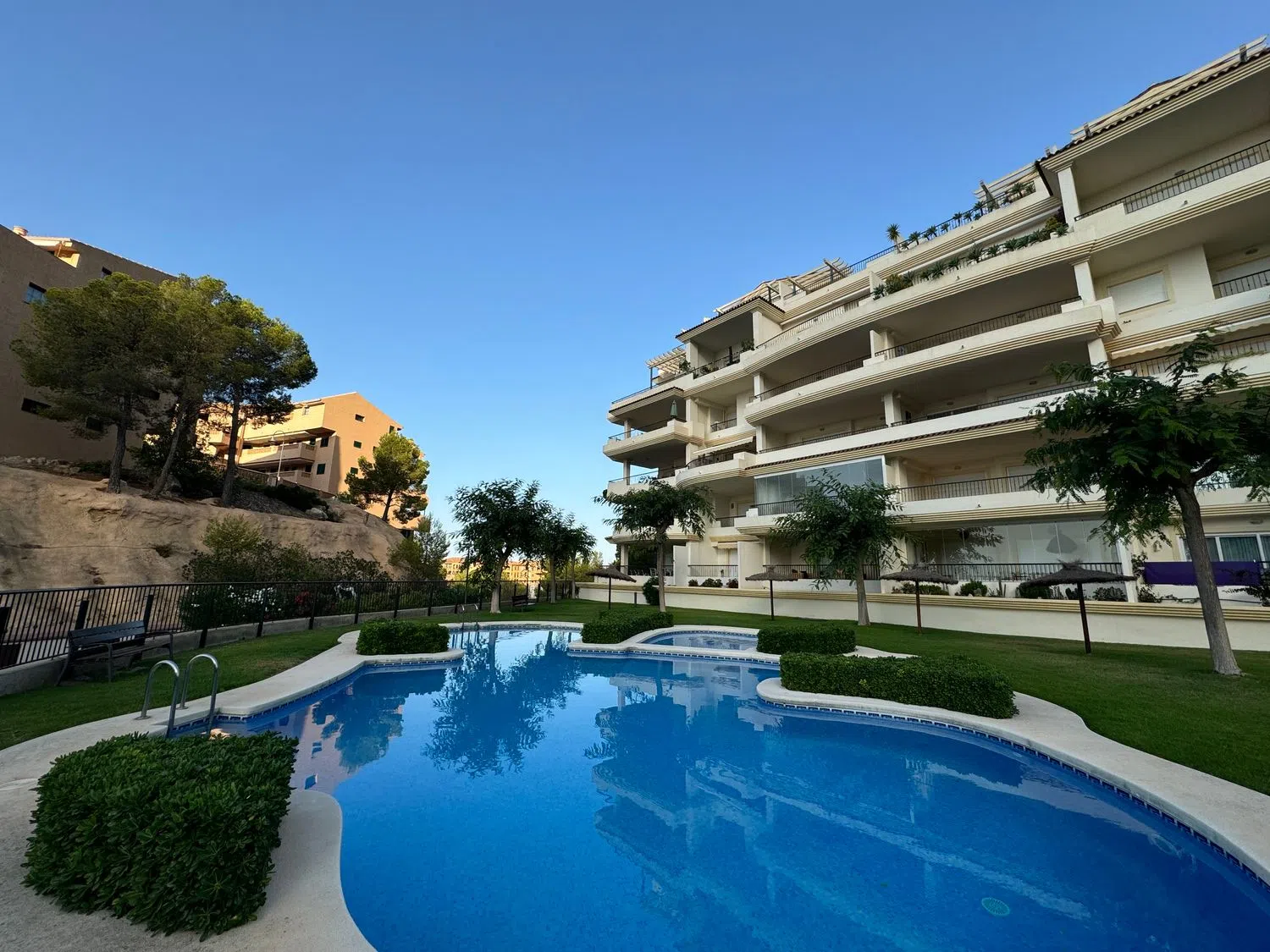 En la zona vigilada del complejo, los residentes pueden disfrutar de una hermosa piscina rodeada de exuberante vegetación, ideal para adultos y niños. La playa es una auténtica maravilla natural de la costa mediterránea. Sus impresionantes acantilados, aguas cristalinas y ambiente tranquilo la convierten en el lugar perfecto para relajarse y disfrutar de la naturaleza. La Cala cercana atrae a los turistas con su belleza singular y la oportunidad de contemplar vistas pintorescas del vasto mar y de las montañas circundantes.