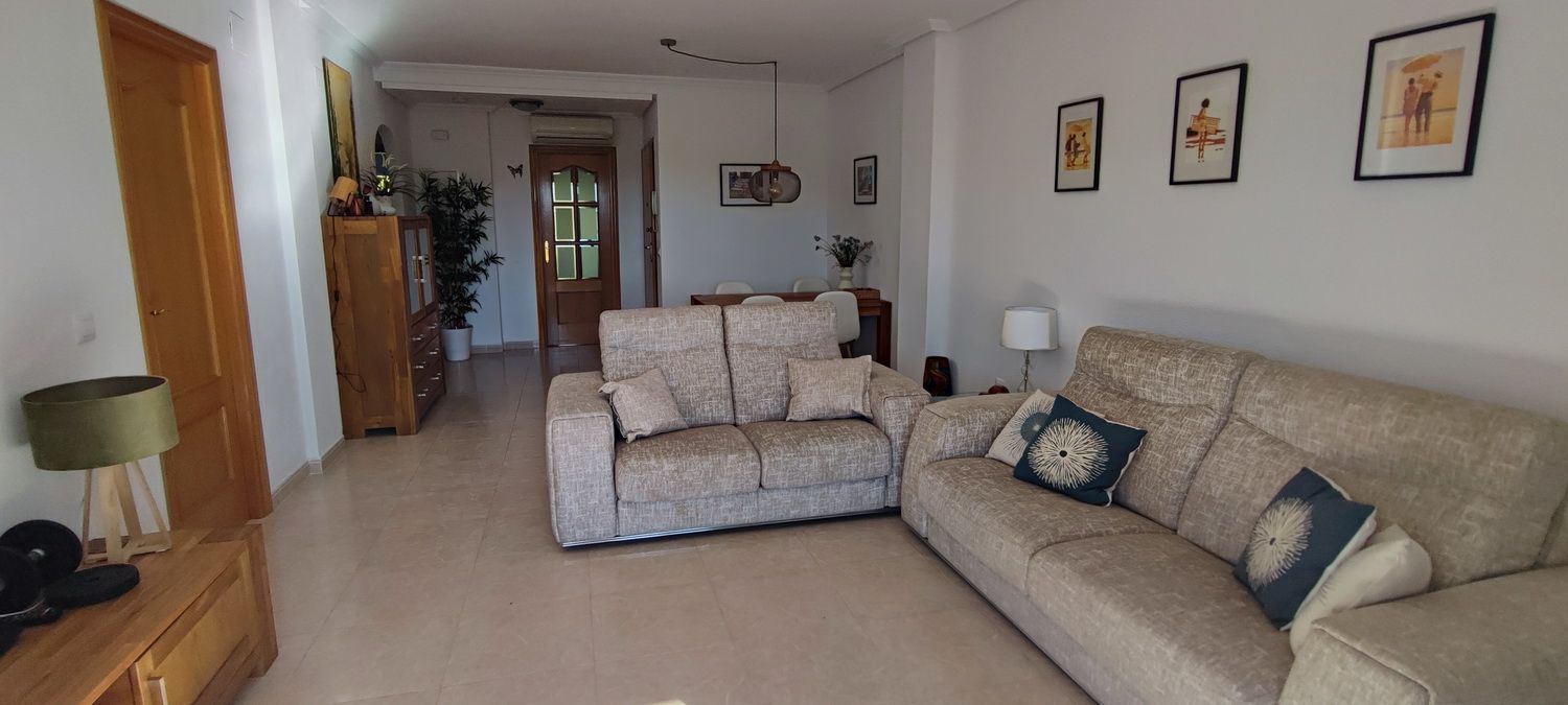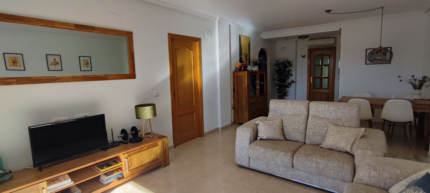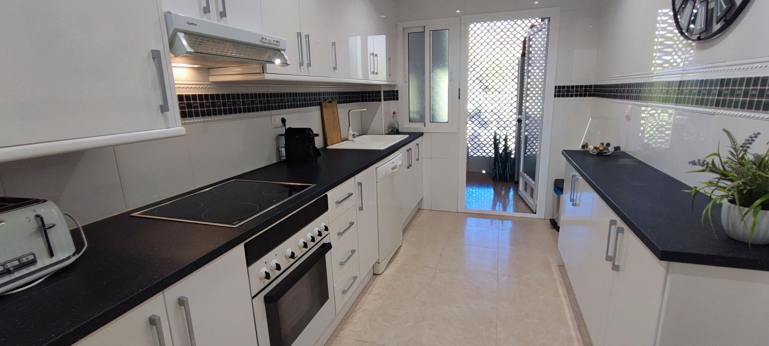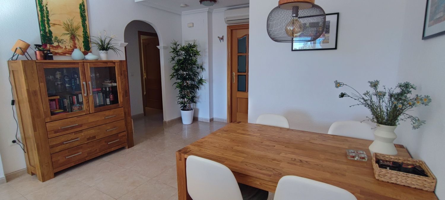 Encantador apartamento que cuenta con una amplia terraza que ofrece vistas despejadas y otra en la parte trasera con hermosas panorámicas de la sierra circundante. Situado en una zona tranquila y arbolada, ideal para disfrutar de la naturaleza. Dispone de 2 acogedores dormitorios, 2 baños, un luminoso salón-comedor y una cocina independiente con lavandería. Equipado con aire acondicionado para garantizar comodidad durante todo el año, también incluye una plaza de aparcamiento. Los residentes pueden disfrutar de una piscina y jardines comunitarios de excelentes calidades. Además, hay acceso a una piscina cubierta y climatizada del complejo vecino, disponible de octubre a abril, perfecta para los meses más fríos.