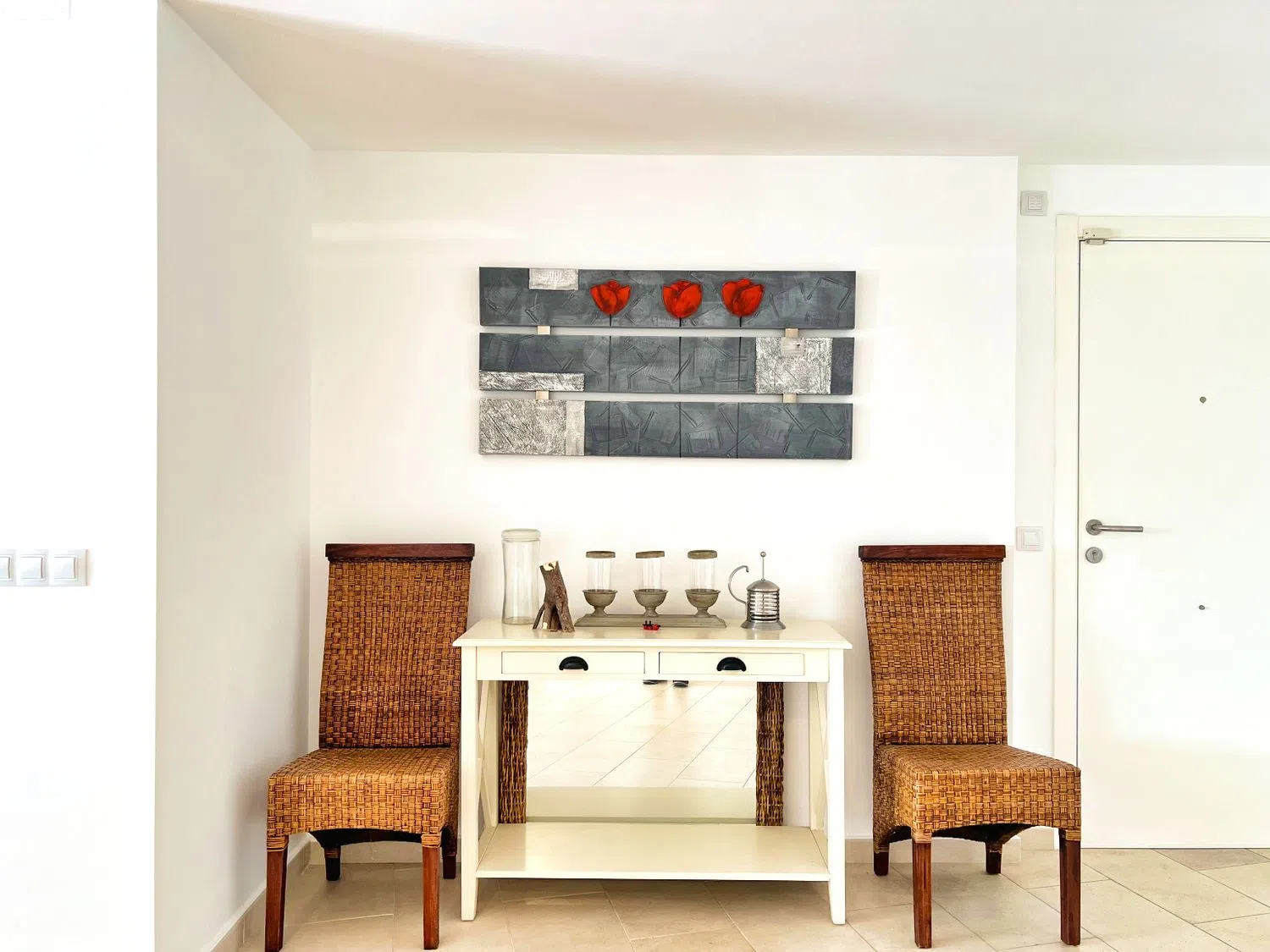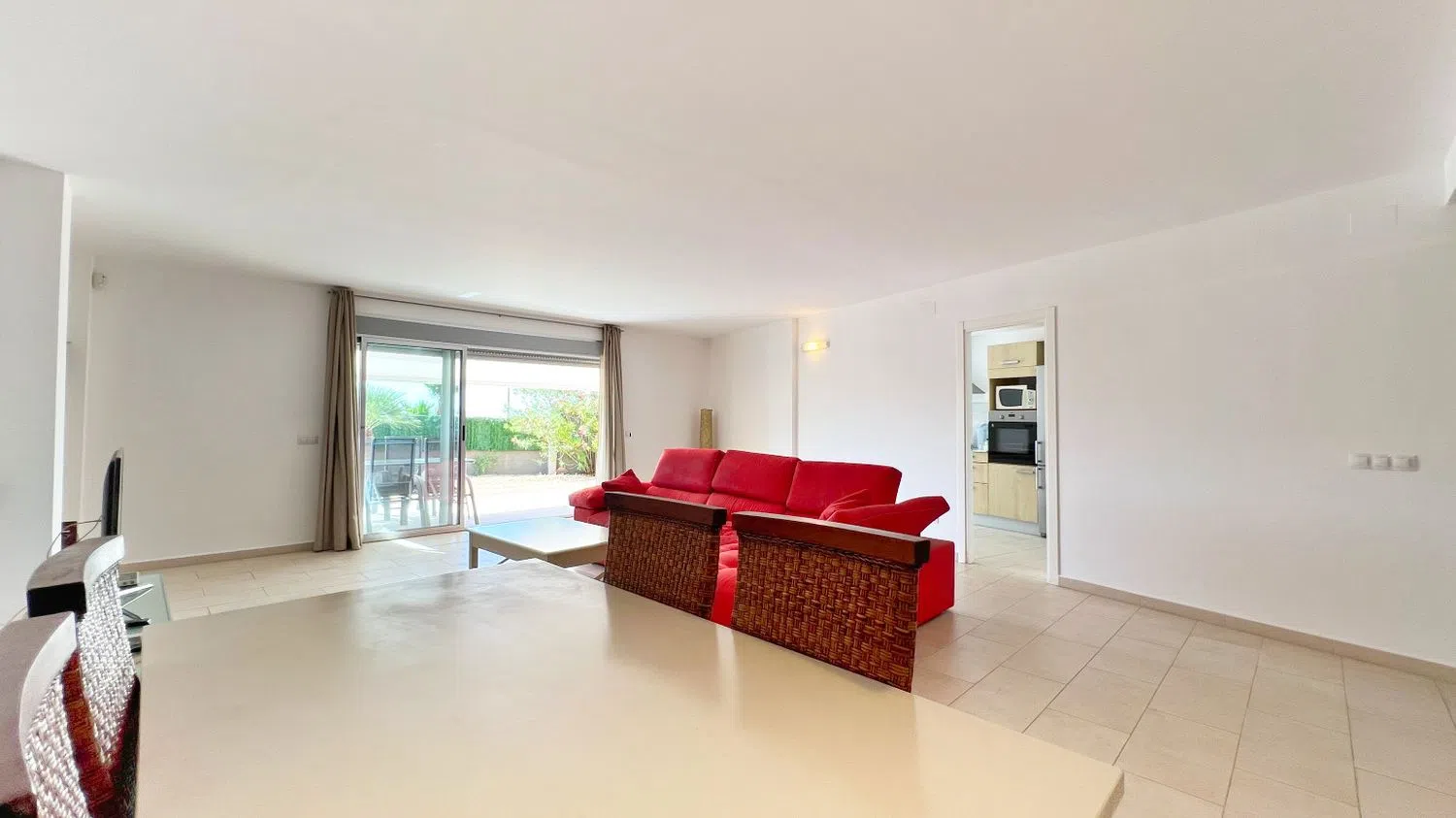 El amplio salón presenta un excelente potencial de renovación, permitiendo la posibilidad de combinarlo con la cocina para una distribución más diáfana. El doble acceso, tanto desde el jardín como a través de la entrada principal, junto con la extensa zona ajardinada, ofrece todas las ventajas de una casa sin la carga de mantenimiento de un chalet. Esto lo convierte en una opción ideal para quienes buscan un estilo de vida relajado pero cómodo junto al mar.