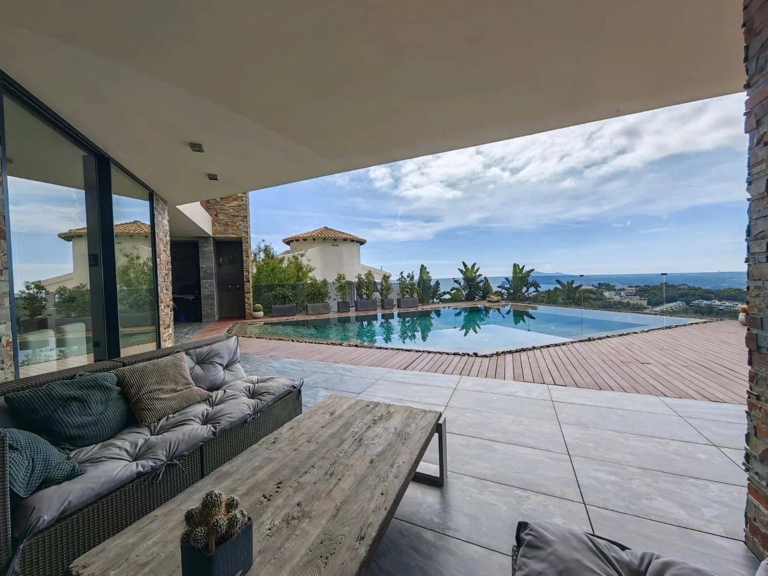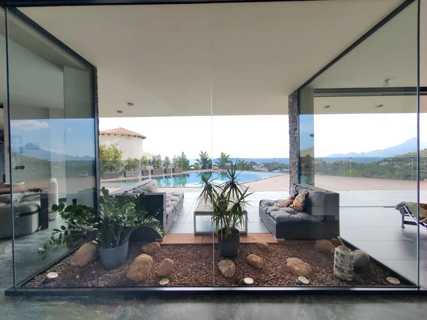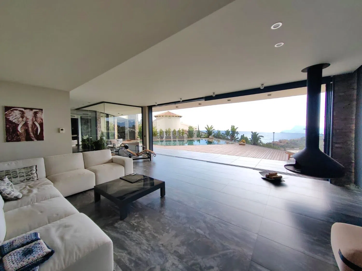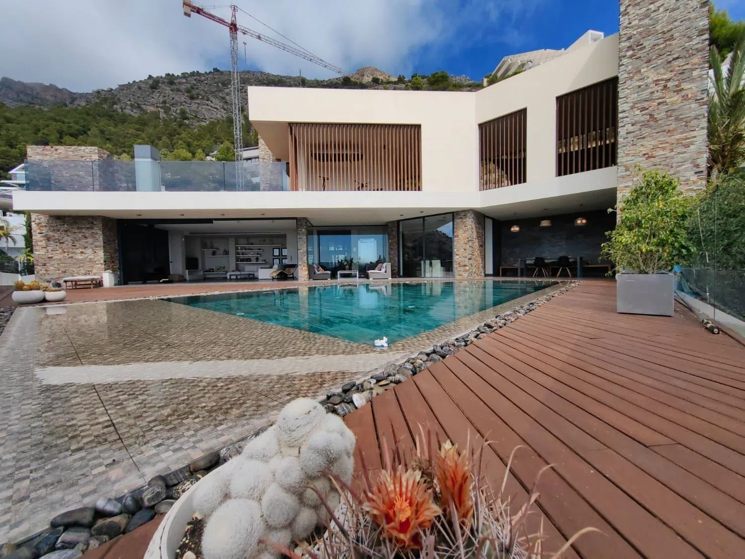 En 2013 se completó la edificación de esta villa moderna de cuatro plantas, que ofrece impresionantes vistas panorámicas al mar en una de las áreas más exclusivas de la Costa Blanca. Todas las plantas están interconectadas mediante elegantes escaleras y un ascensor, brindando comodidad y estilo.