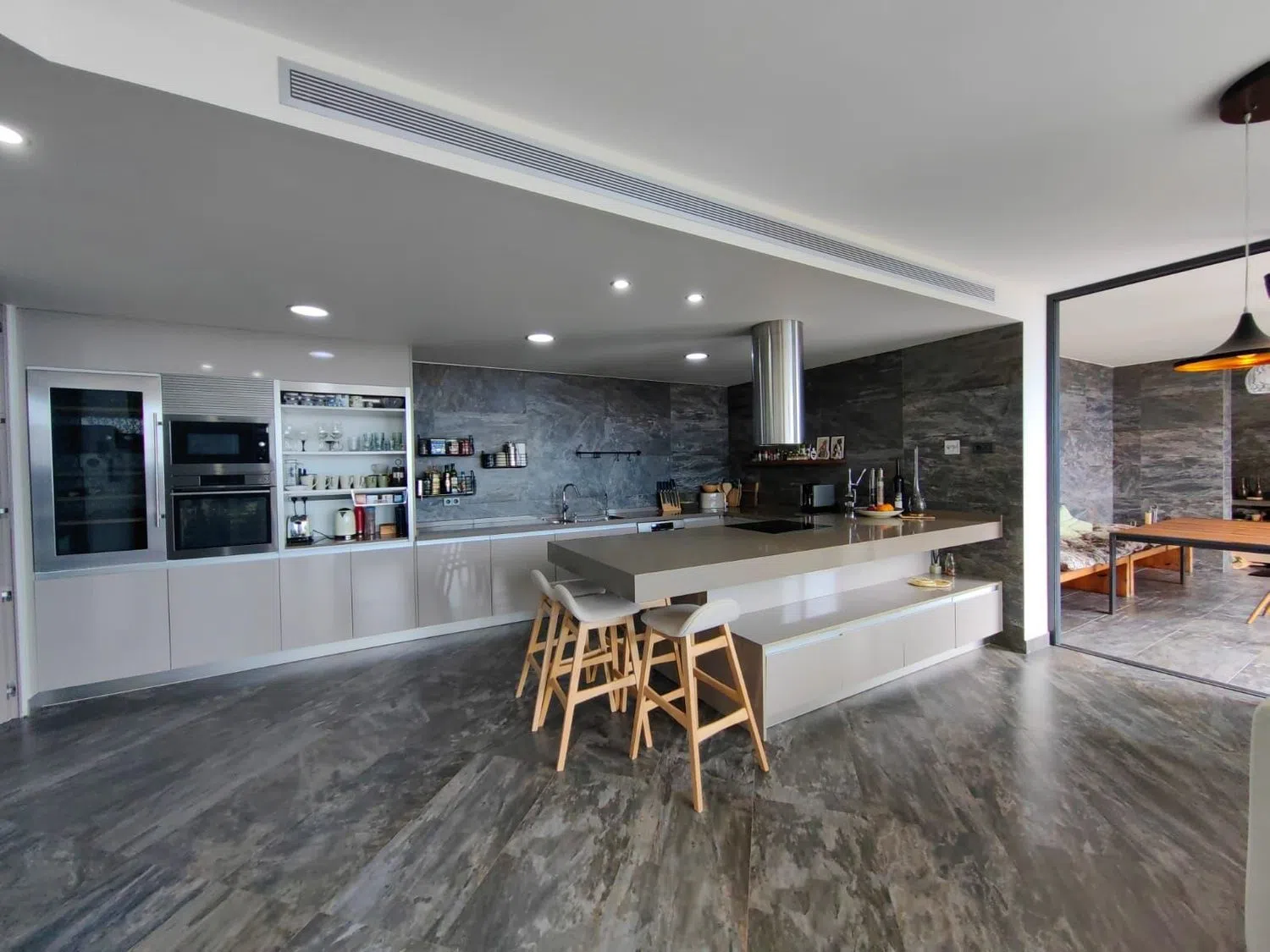 Cada dormitorio está perfectamente diseñado con baños y vestidores independientes que garantizan comodidad y privacidad. Hay flexibilidad para transformar los espacios de vida, permitiendo que los ambientes cerrados se conviertan en abiertos según se requiera. La zona de barbacoa es un lugar ideal para compartir momentos con familiares y amigos.