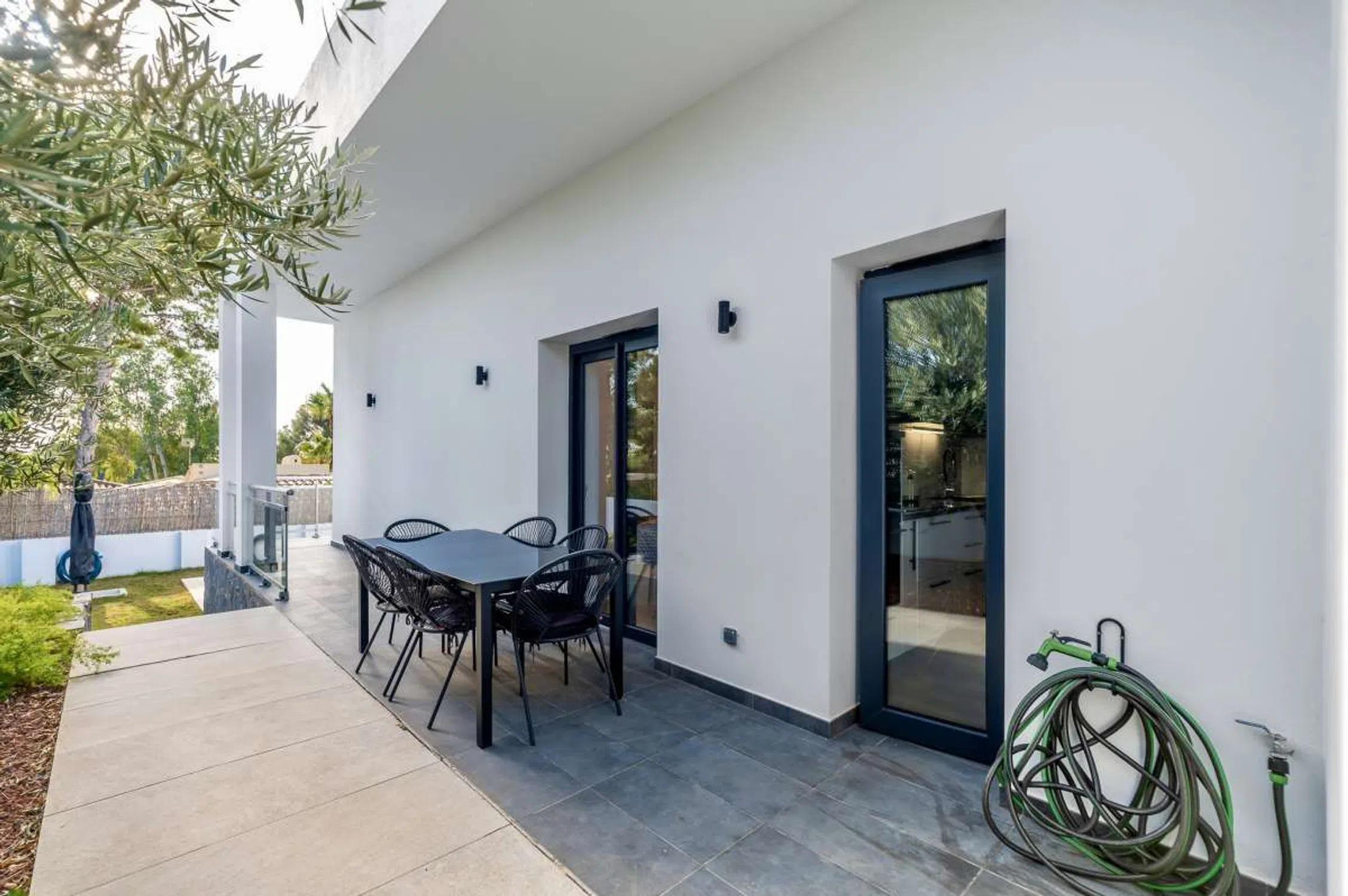 Ubicada en la exclusiva zona residencial de Santa Clara, cerca de Altea, esta propiedad disfruta de un entorno tranquilo y privado, a la vez que se mantiene cerca de todos los servicios esenciales. La costa mediterránea y las playas están a solo 5-8 minutos, el pueblo de Altea, con sus restaurantes y bares, a 5-10 minutos, y varios campos de golf se encuentran a unos 10-30 minutos en coche. El Aeropuerto Internacional de Alicante está a unos 60-65 minutos, lo que la convierte en una vivienda ideal tanto para vivir como para disfrutar de las vacaciones. Esta villa contemporánea independiente, construida en 2021, combina a la perfección el diseño moderno con la funcionalidad cotidiana, ofreciendo una armoniosa combinación de sofisticación y confort. Sus líneas arquitectónicas limpias y su estilo neutro permiten al nuevo propietario añadir fácilmente su toque decorativo personal. La propiedad está lista para entrar a vivir y no requiere reformas. Con una generosa superficie construida de 226 m², la villa se asienta sobre una parcela llana de 840 m² y se beneficia de una orientación sur, lo que garantiza abundante luz natural durante todo el día y un ambiente cálido y acogedor. Tanto si busca una elegante casa familiar como un lujoso refugio mediterráneo, esta villa se adapta a la perfección a sus necesidades con cuatro dormitorios bien equipados y tres elegantes baños. El interior, cuidadosamente diseñado, cuenta con un luminoso y acogedor salón con chimenea de leña, perfecto para crear un ambiente acogedor en las noches más frescas. Junto al salón, destaca la cocina independiente, totalmente equipada con electrodomésticos de alta gama y con una zona de lavandería independiente para mayor comodidad. En el exterior, una terraza de 10 m² le invita a disfrutar del excepcional clima mediterráneo de Altea. El jardín privado impresiona con una zona de barbacoa y una impresionante piscina de agua salada de 27 m², con preinstalación de agua caliente, que permite disfrutarla durante todo el año. Una sauna privada completa la experiencia al aire libre, ofreciendo la máxima relajación tanto a residentes como a invitados. Cada detalle de esta villa se ha cuidado al máximo para mejorar la comodidad y la calidad de vida. La propiedad incluye aparcamiento privado para dos vehículos, espacio de almacenamiento adicional y armarios empotrados en los dormitorios. El aire acondicionado y la calefacción central garantizan comodidad durante todo el año. Los compradores con conciencia ecológica apreciarán los paneles solares, que mejoran la eficiencia energética de la vivienda. El doble acristalamiento acústico proporciona un excelente aislamiento y tranquilidad, mientras que las persianas eléctricas y una puerta de seguridad reforzada aportan seguridad y comodidad. Con su elegante diseño, características de primera calidad y una ubicación privilegiada cerca del mar y de Altea, esta villa representa una oportunidad excepcional para adquirir una casa refinada en uno de los destinos costeros más codiciados de España.