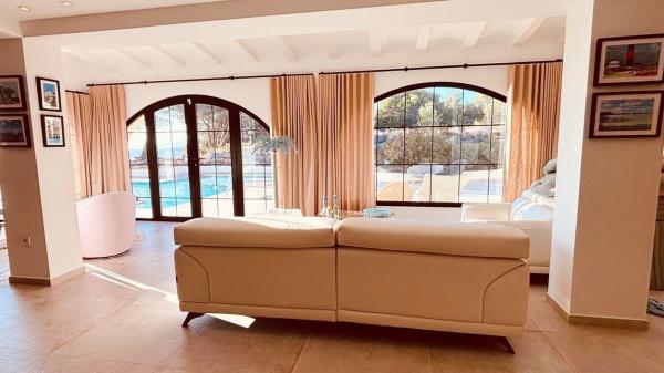 Disfrute de una elegancia inigualable en esta excepcional villa, situada en una de las zonas más codiciadas de Altea. Rodeada por 12.400 m² de terreno privado, esta vivienda de 417 m² ha sido completamente renovada en 2025 con materiales de la más alta calidad, ofreciendo un hogar moderno, impecable y listo para entrar a vivir. La propiedad está diseñada de manera inteligente en un semisótano y dos plantas superiores, con cinco amplios dormitorios, tres baños completos y un aseo de invitados. Los espaciosas salón-comedor reciben abundante luz natural y se abren directamente a las terrazas, creando una conexión perfecta entre el interior y el exterior. Todas las estancias cuentan con aire acondicionado frío/calor, calefacción central y suelo radiante con control individual, garantizando confort durante todo el año. Las vistas panorámicas de la bahía de Altea son uno de los principales atractivos de la villa, disfrutables desde varias zonas, incluyendo las terrazas y los jardines paisajísticos. Los espacios exteriores han sido diseñados para ofrecer rincones íntimos y tranquilos mientras realzan la belleza natural del entorno. En el exterior, la propiedad es un auténtico refugio. Jardines cuidados y amplias terrazas conducen a una impresionante piscina infinity de 6 x 12 metros, complementada con una zona de playa de 3 x 6 metros—ideal para relajarse, recibir invitados o disfrutar de momentos de tranquilidad con la familia y amigos. Cada detalle de esta villa ha sido pensado para ofrecer un estilo de vida exclusivo, definido por comodidad, privacidad y espectaculares vistas al Mediterráneo.