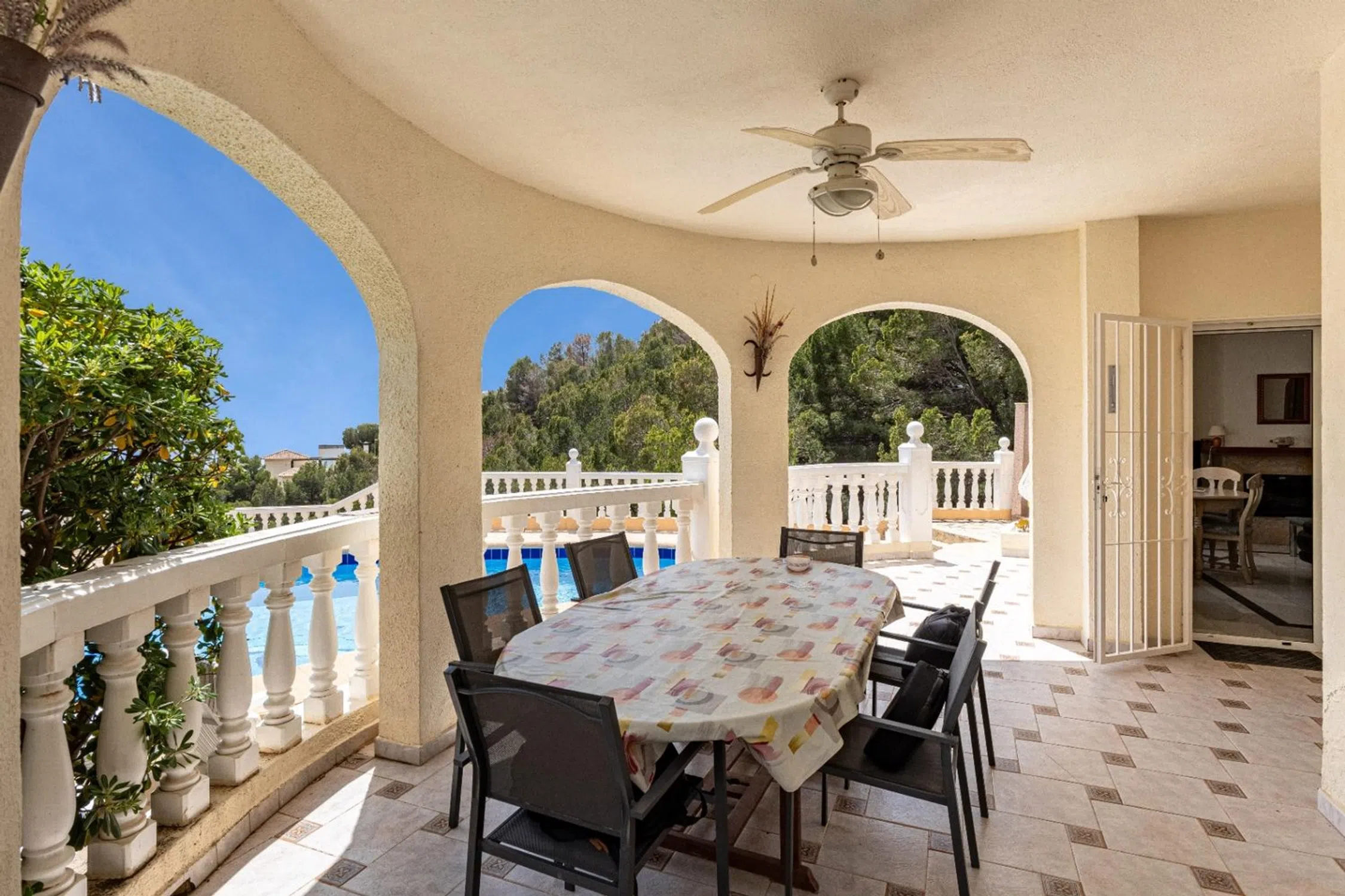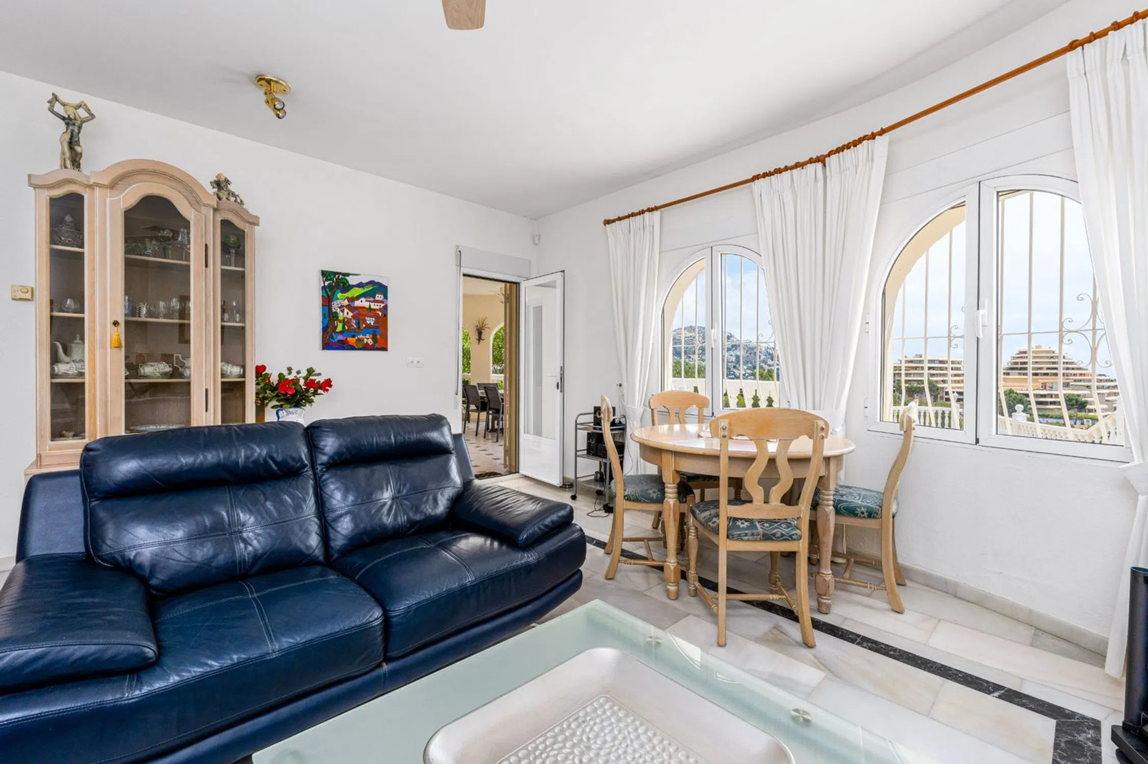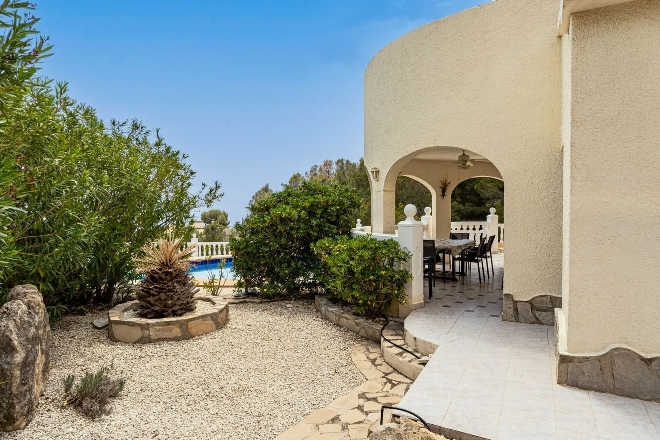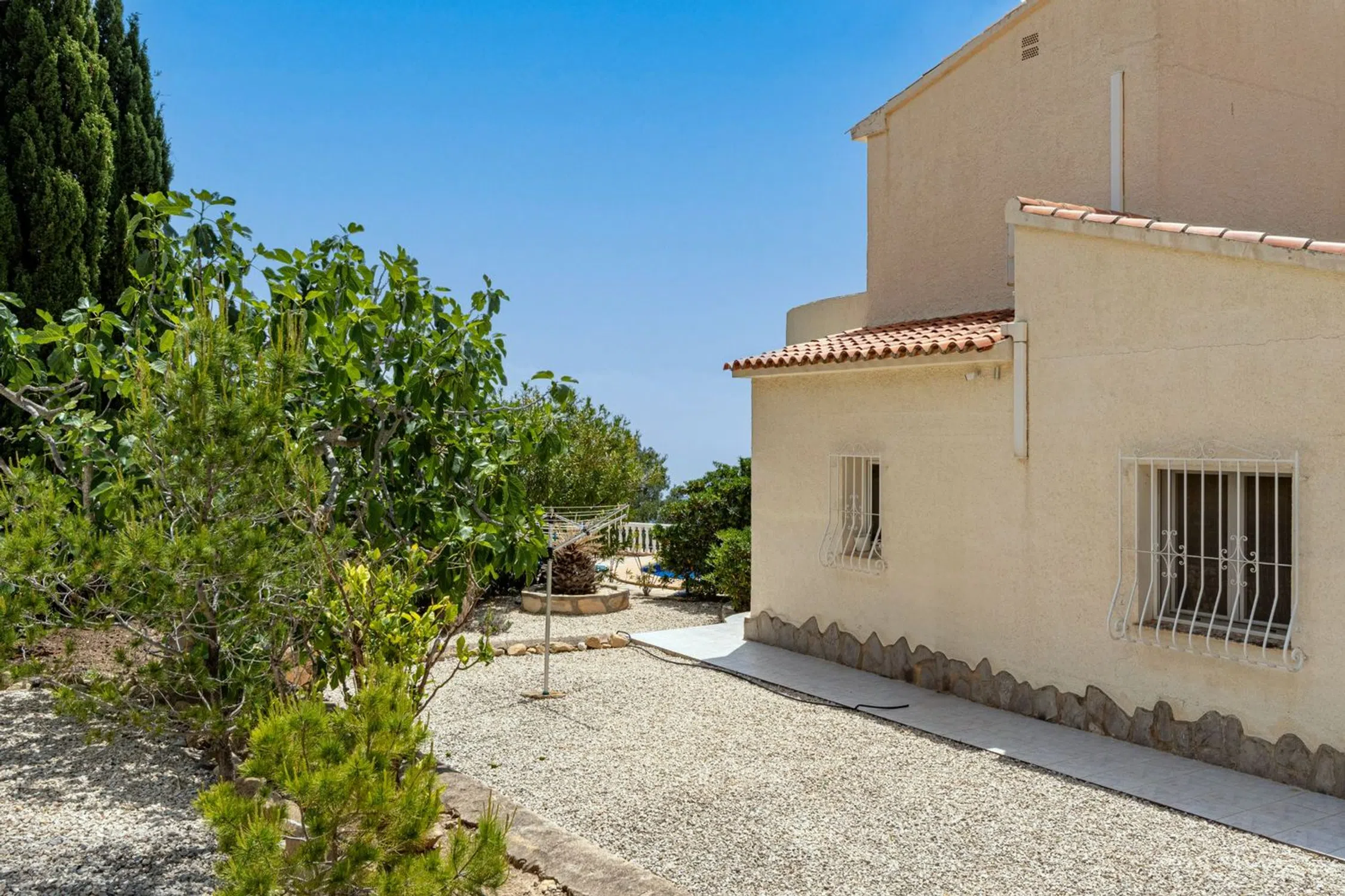 Encantadora Villa Mediterránea con Vistas Panorámicas al Mar – Junto a Altea Hills Situada justo al lado de los prestigiosos Altea Hills, esta elegante villa de estilo mediterráneo ofrece algunas de las vistas al mar más espectaculares de toda la región. Con su posición elevada, cada rincón de la casa—ya sea el área de la piscina climatizada, la terraza principal o el balcón del piso superior—ofrece vistas ininterrumpidas del Mar Mediterráneo que se extienden interminablemente hacia el horizonte. Diseñada a finales de los años 90 por un arquitecto alemán, la villa combina una elegante arquitectura atemporal con una artesanía de calidad. Su distribución cuidadosa incluye tres amplias habitaciones y tres baños bien equipados, lo que la hace perfectamente adecuada para vivir todo el año o como un refinado retiro vacacional. La casa está equipada con 14 paneles solares, reduciendo considerablemente el consumo de energía y alineándose con los objetivos de sostenibilidad modernos. La piscina climatizada permite su uso cómodo durante todas las estaciones, y el espacio de estacionamiento privado garantiza conveniencia y seguridad. La villa emana un encanto mediterráneo tradicional mientras incorpora características modernas prácticas. Se asienta en una parcela de generosas dimensiones, ofreciendo no solo privacidad, sino también el potencial para futuras ampliaciones o proyectos de jardinería personalizados. Esta propiedad es una rareza para quienes buscan una combinación armoniosa de tranquilidad, belleza natural y carácter arquitectónico, todo en una de las ubicaciones más deseadas cerca de Altea.