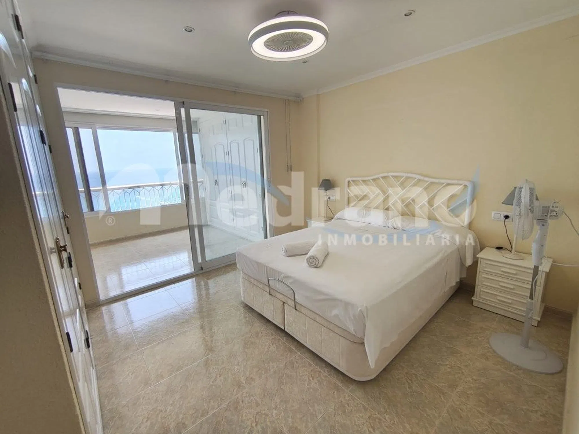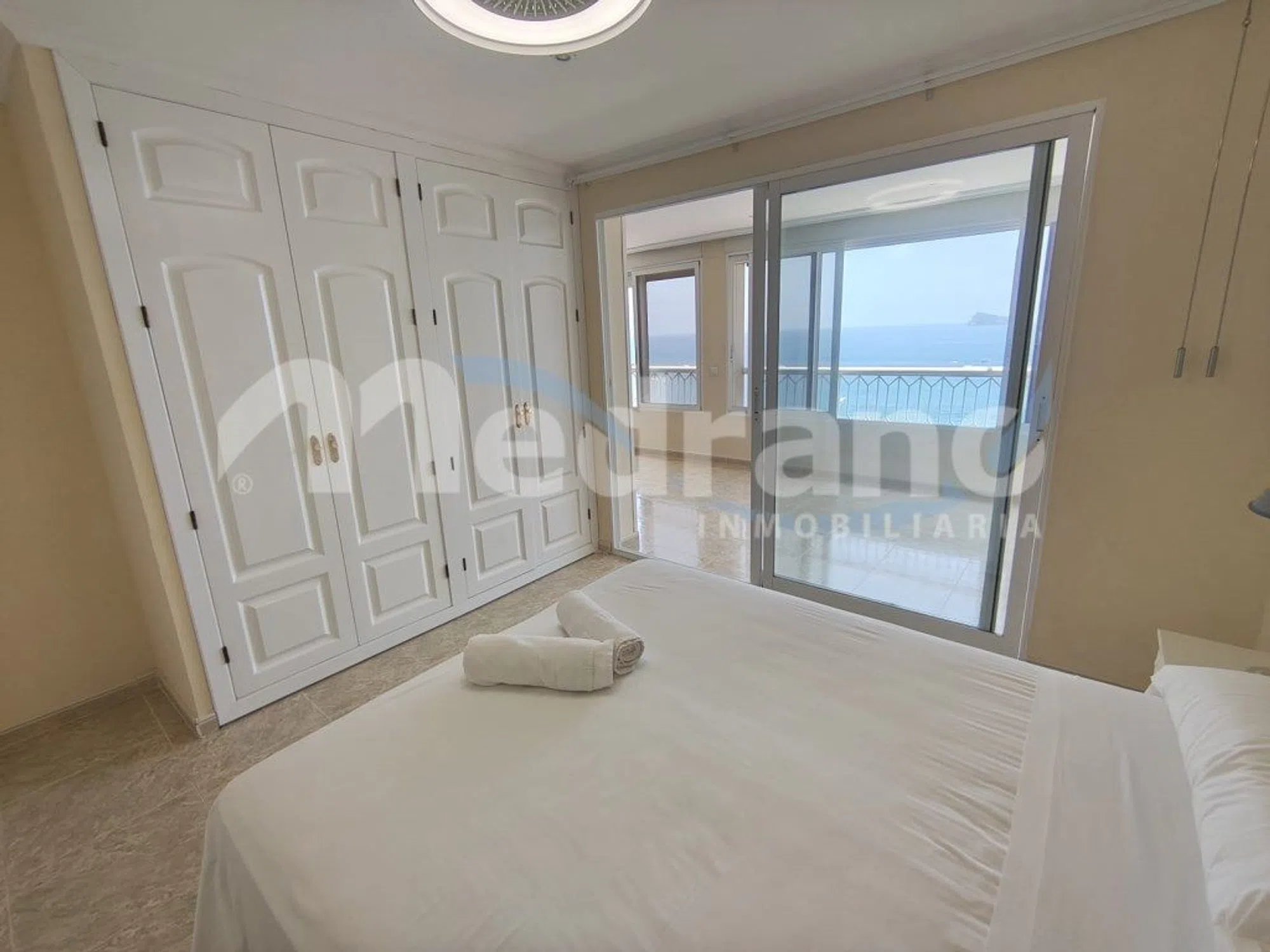 Licencia Vacacional! Exclusivo piso en Primera Línea de playa de Levante, Benidorm (Alicante) Se presenta esta magnífica vivienda situada en una de las ubicaciones más privilegiadas de Benidorm, en primera línea de la emblemática playa de Levante. Al acceder a la propiedad, nos recibe una distribución cuidadosamente diseñada que combina confort y vistas impresionantes. Al entrar, encontramos una cocina independiente, completamente equipada. A continuación, se despliega un amplio salón comedor que destaca por sus espectaculares vistas al mar, gracias a su elevada posición y proximidad a la costa, que parecen ofrecer una experiencia de estar literalmente sobre el agua. La antigua terraza ha sido acristalada, integrándose perfectamente al salón para ampliar el espacio y potenciar la luminosidad. El salón cuenta con varios armarios empotrados y ofrece la posibilidad de convertirlo en un tercer dormitorio con mínima obra, facilitando así una distribución flexible según las necesidades del propietario. El dormitorio principal dispone de grandes armarios empotrados y acceso directo a la terraza acristalada, desde donde se puede disfrutar de vistas panorámicas al mar. El segundo dormitorio, doble, también cuenta con armarios empotrados. La vivienda dispone de dos baños con ducha, ambos reformados y en excelentes condiciones. Totalmente reformada, la vivienda está lista para entrar a vivir, equipada con aire acondicionado frío/calor y persianas domotizadas que aportan comodidad y modernidad. La urbanización ofrece una piscina comunitaria y se encuentra en una zona privilegiada, rodeada de supermercados y todos los servicios necesarios para una vida cómoda. Además, cuenta con portero físico, parking comunitario y una comunidad bien valorada. Una oportunidad única para disfrutar de un estilo de vida exclusivo en una de las ubicaciones más codiciadas de la Costa Blanca, con vistas ininterrumpidas al mar, la playa de Levante y toda la costa de Benidorm, incluyendo la emblemática isla. Si desea más información o quiere visitarlo contacte con nosotros en el teléfono (teléfono oculto) o (teléfono oculto) Oficina La cala. Calle juan Antonio Baldoví, edf. fundación II local Inmobiliaria Medrano (03502) Benidorm Oficina Rincón de Loix. Avenida Montecarlo 11, bajo Medrano (03503) Benidorm. ref: 3915.