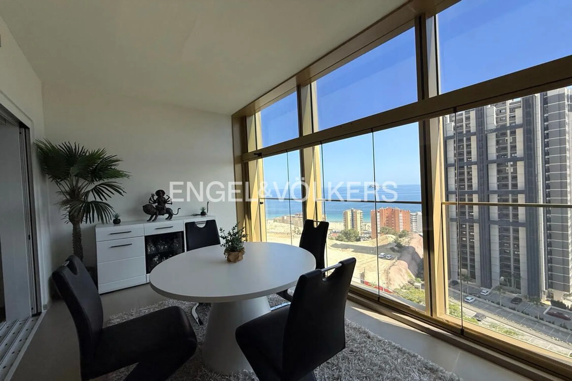 Apartamento de lujo en Torre Intempo Experimente la cima del lujo en este impresionante apartamento con vistas al mar en la icónica Torre InTempo de Benidorm, una de las joyas de la Costa Blanca. Este majestuoso edificio residencial, el más alto en España y el segundo más alto en la Unión Europea, le ofrece un estilo de vida excepcional a pocos pasos de la Playa Poniente de Benidorm. El amplio salón, la cocina independiente y el lavadero proporcionan espacio y funcionalidad. Dos dormitorios, uno de ellos con baño "ensuite", le brindan privacidad y confort. Pero lo que realmente le robará el aliento es la terraza de 23m2 con vistas al mar y al skyline de la ciudad, integrada en la vivienda con un doble acristalamiento. Desde el primer momento que pise esta vivienda le envolverá un lujo discreto, ya que el apartamento está equipado con los mejores materiales y calidades. Las ventanas de doble acristalamiento y el aislamiento térmico garantizan un clima perfecto durante todo el año, los amplios armarios empotrados, el aire acondicionado en toda la vivienda, la cocina de alta gama, y los elegantes acabados son solo algunas de las características que lo convierten en un verdadero paraíso. La propiedad cuenta además con una plaza de garaje y un enorme trastero incluidos en el precio. Cuenta con licencia turística y el edificio tiene una ocupación de alquiler superior al 70%. El edificio Intempo es una joya en sí mismo, con servicios de hotel como restaurante, cafetería, zona fitness, Sky Wellness y mucho más. En la planta club, disfrutará de zonas comunes interiores y exteriores, un gimnasio con vistas panorámicas, spa, salas de masajes, jardín panorámico con terraza, azotea con skybar y jacuzzis exteriores. ¡Llámenos ya para concertar una visita a este excepcional apartamento en Torre InTempo!