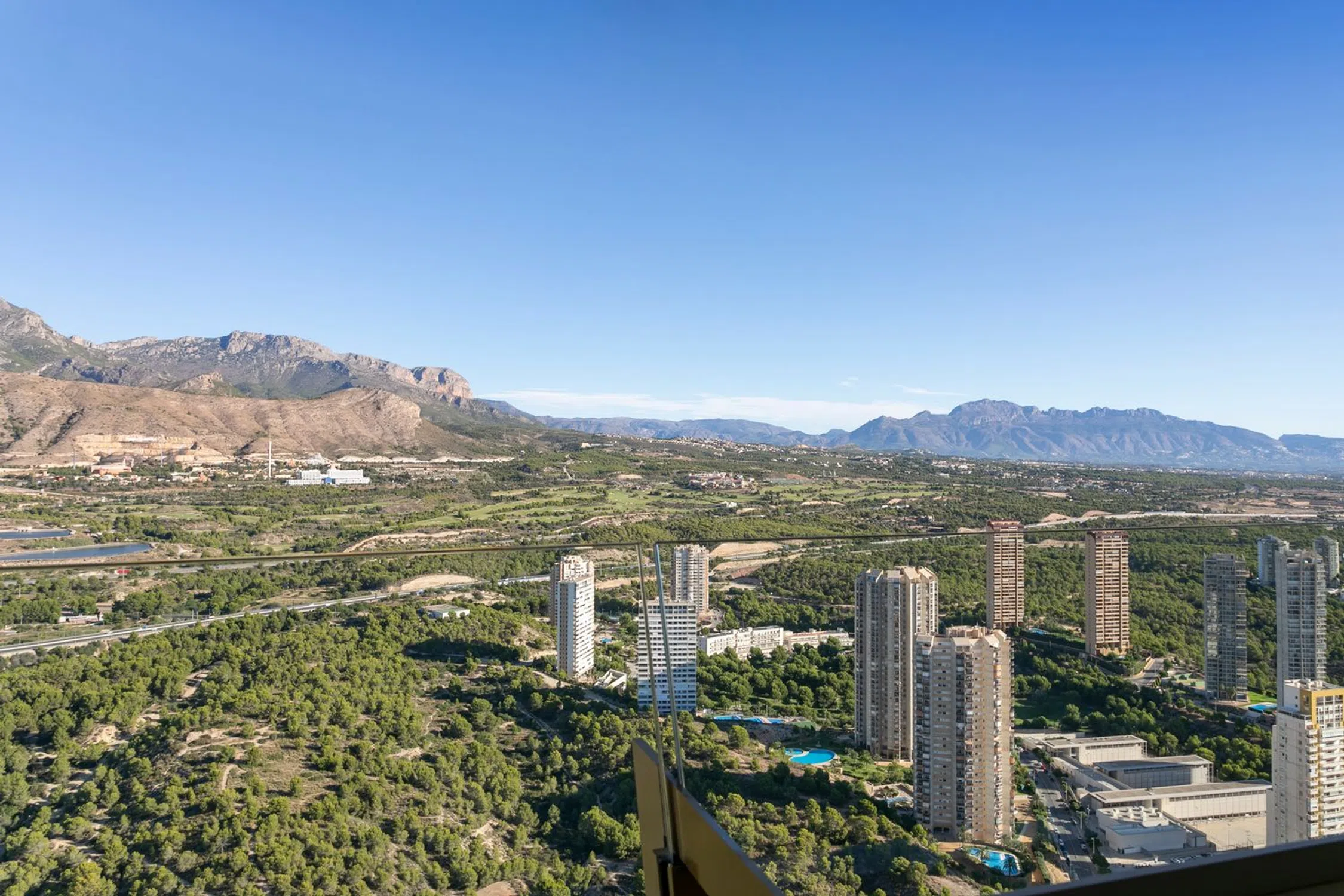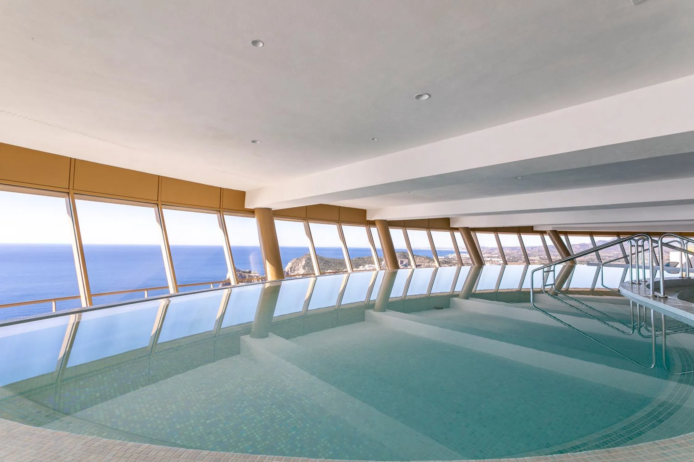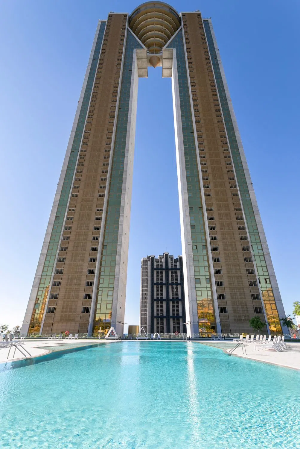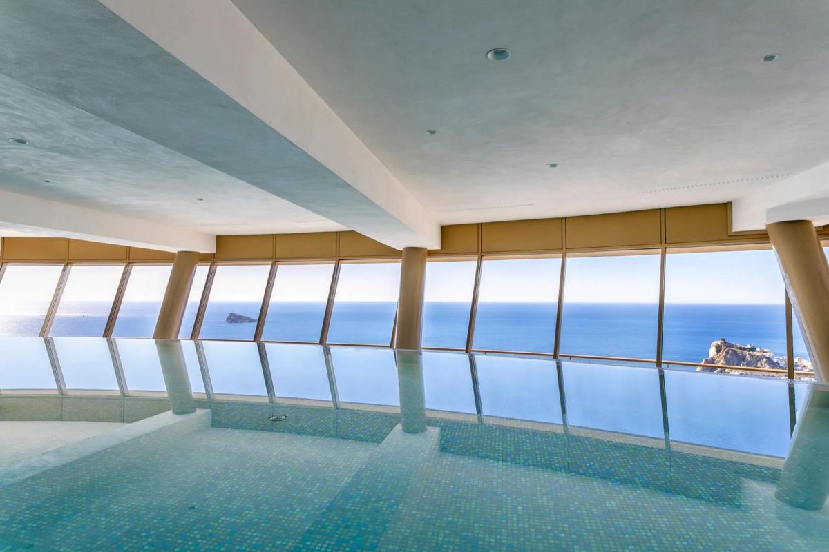 Espectacular apartamento de lujo, ubicado en uno de los edificios más icónicos de Benidorm: el exclusivo INTEMPO, en la Playa de Poniente. Esta vivienda ofrece un amplio y luminoso salón, cocina independiente con lavadero, dos dormitorios —uno de ellos con baño en suite— y una magnífica terraza de 23 m² con vistas abiertas al mar y al impresionante skyline de la ciudad. Su diseño, instalaciones y acabados corresponden a los estándares más altos del mercado. Situado en una planta alta y en esquina, el apartamento disfruta de una privilegiada panorámica sobre toda la ciudad. Los propietarios acceden a la espectacular planta club, donde encontrarán completas zonas comunes interiores (gimnasio con vistas, spa, salas de masajes, juice bar) y exteriores (jardines panorámicos, terrazas, skybar y jacuzzis al aire libre). El edificio cuenta con 8 ascensores, dos torres, escaleras y las más avanzadas medidas de seguridad. Incluye plaza de aparcamiento y trastero. La comunidad pone a disposición más de 6.500 m² de espacios comunes, aparcamientos, trasteros y un restaurante exclusivo para propietarios en la planta baja, además de piscinas, zona infantil y accesos directos a ambas torres. Cada torre dispone de tres ascensores de alta velocidad que conectan todas las plantas y la azotea. En la planta 46 se encuentra la zona más exclusiva del edificio: un espectacular jacuzzi infinito con vistas incomparables, áreas de fitness, salas de masajes y saunas. En la planta 47, la azotea ofrece el mejor mirador de toda la bahía, ideal para disfrutar del atardecer sobre la Playa de Poniente. El apartamento dispone de 95 m² útiles y 130 m² construidos, distribuidos en dos dormitorios —el principal con baño en suite y vistas al Mediterráneo, y el segundo con vistas a la montaña—. El salón y la cocina de concepto abierto conectan con una elegante terraza que regala unas vistas extraordinarias al mar. La vivienda garantiza una temperatura ideal durante todo el año gracias a sus carpinterías de aluminio lacado con doble acristalamiento y protección solar, aire acondicionado individual y sistemas de climatización de bajo consumo. Los dormitorios cuentan con amplios armarios empotrados lacados en blanco. La cocina se entrega completamente equipada con mobiliario de primeras marcas, encimeras de alta resistencia y electrodomésticos de última generación: horno, microondas, lavavajillas, campana extractora, vitrocerámica y frigorífico. Las paredes están acabadas en pintura blanca y el suelo revestido con tarima de gres porcelánico. Además, todo el edificio dispone de red Wi-Fi universal para residentes, tanto en las viviendas como en las zonas comunes. La propiedad se vende con plaza de parking subterránea y trastero incluidos.