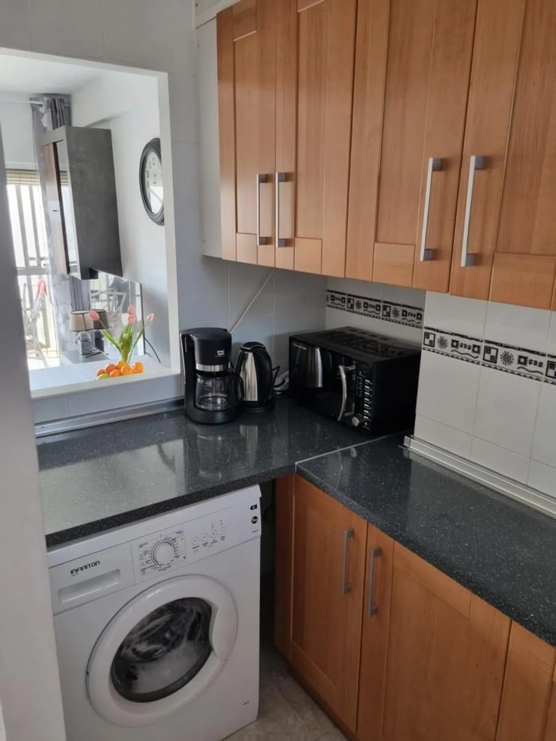 Apartamento totalmente reformado en zona residencial de la Playa de Poniente. Junto al campo de golf Las Rejas. Se vende amueblado 2 dormitorios 1 baño con ducha. Climatizado por aire. Suelos de gres. Cocina totalmente amueblada y equipada. Comunidad con zonas verdes, parque infantil y piscina comunitaria.