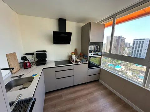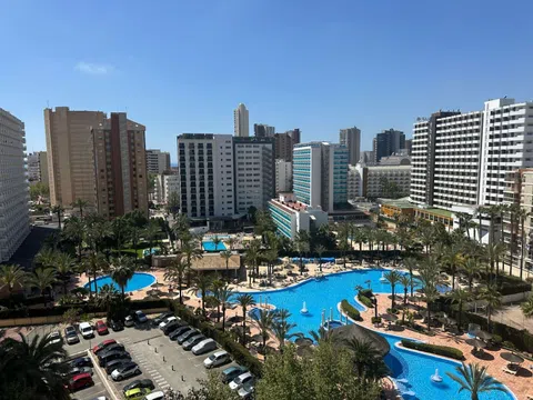 Luminoso apartamento en venta en Benidorm, a tan solo 500 metros de la playa de Levante. El apartamento con dos amplios dormitorios, un baño y vistas abiertas a la piscina, se encuentra en el soleado lado sur. El precio incluye una plaza de aparcamiento. La propiedad se encuentra en un complejo cerrado y vigilado con una gran zona bien cuidada, que ofrece a los residentes una piscina cubierta climatizada, tres piscinas exteriores, minigolf, áreas de recreo, un moderno gimnasio, canchas de tenis, pistas de pádel, así como canchas de fútbol y baloncesto. El apartamento es ideal tanto para la vida cómoda como para la recreación, y también tiene un alto potencial de alquiler debido a su ubicación y diversa infraestructura. Una excelente opción para aquellos que buscan una vivienda junto al mar o quieren invertir de forma rentable en bienes raíces en una de las ciudades turísticas más populares de España.