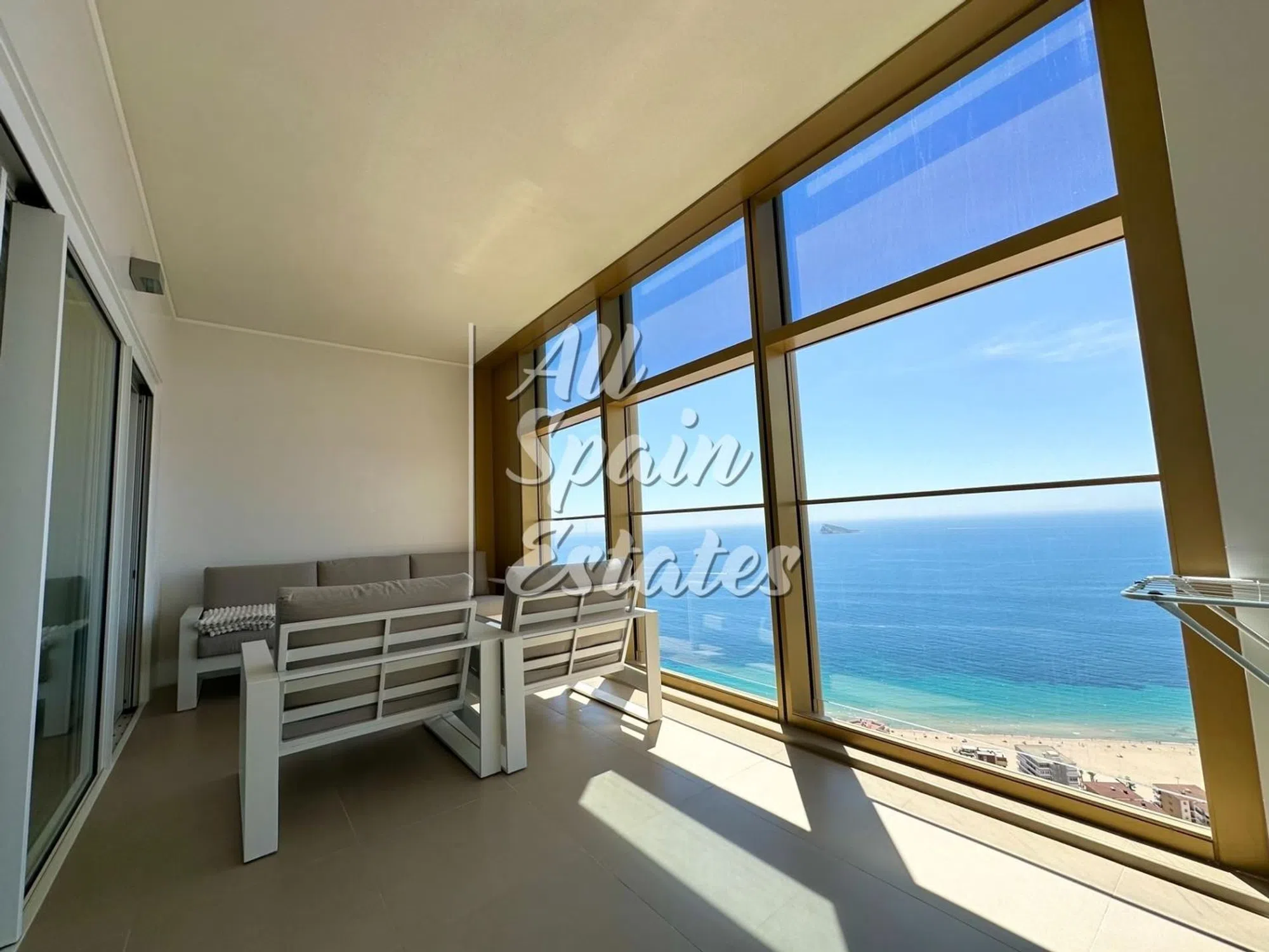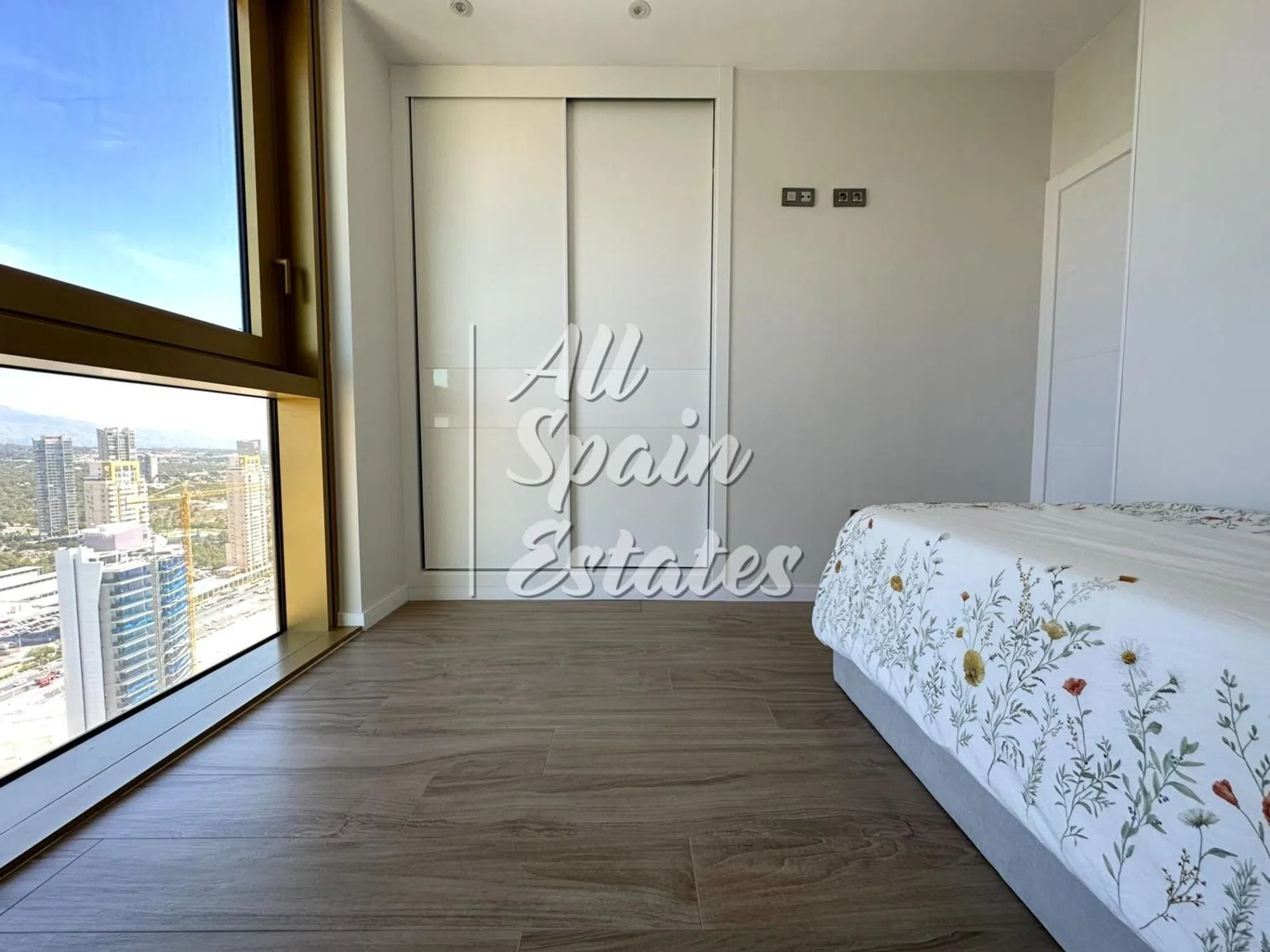 Esta moderna vivienda ofrece las vistas impresionantes al mar, la Isla de Benidorm y La Cala. Esta ubicada en la mejor zona de Poniente Playa. El apartamento es de 2 dormitorios, 2 baños completos, uno en suite y el otro con la bañera hidromasaje y suelo radiante. El dormitorio principal cuenta con la cama de matrimonio y amplio armario empotrado, tiene la salida a la terraza y vistas al mar. Otro dormitorio dispone de una cama individual y otro armario empotrado, las vistas hacia Puig Campaña y toda la sierra. El salón tiene ventanales panorámicos, es muy luminoso y acogedor. La cocina independiente viene totalmente equipada: vitrocerámica, horno, microondas, lavavajillas, nevera. Además, dispone de lavandería con lavadora y secadora, el termo eléctrico con capacidad de 100L. Opcional: Plaza de parking subterráneo apto para dos coches se vende aparte por el precio de 60.000€, tamaño 28,5 m2. Amplio trastero en la planta de sótano se vende aparte por el precio de 30.000€, tamaño 7 m2. Aire acondicionado (frio / calor) Suelo radiante (baño) WiFi Lavadora Secadora Doble acristalamiento Puerta blindada Videoportero Conserje Parking (garaje) Vistas al mar Gimnasios Piscina abierta Piscina climatizada Jacuzzi Sauna Co-working space Zonas ajardinadas Parque infantil Cafeteria Sky-bar El apartamento se encuentra en la planta 27 del rascacielos más famoso de toda la Costa Blanca. El edificio de 47 plantas en la urbanización privada con la conserjería, vídeo vigilancia, seguridad en la entrada, cafetería, espacio co-working, la piscina enorme al aire libre, spa zona con la piscina climatizada y sauna, parque infantil. La hoya es el skybar en la azotea de la planta 47 abierta al aire libre que ofrece una experiencia única y las vistas espectaculares. Está ubicado en la zona de Poniente Playa, la zona más prestigiosa de Benidorm que une la playa, moderna arquitectura y todos los servicios necesarios. Benidorm es verdadero Manhattan del Mediterráneo, la cuidad que se destaca y se considera como uno de los principales destinos turísticos de la Costa Blanca, gracias a sus excelentes playas y una amplia oferta de restauración y actividades de ocio. Alicante aeropuerto: a 35 min Alicante cuidad: a 25 min Altea casco antiguo 15 min Terra Mítica, Aqualandia, Parque natural de la Sierra Helada Isla de Benidorm Puig Campana Campos de Golf: aquí estarás rodeado de los sitios de interés y todas las posibilidades de varias actividades. All Spain Estates® Properties is here to ensure your real estate journey is smooth! Together we will find "Your home Your light" [IW].