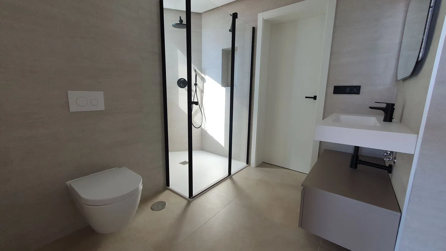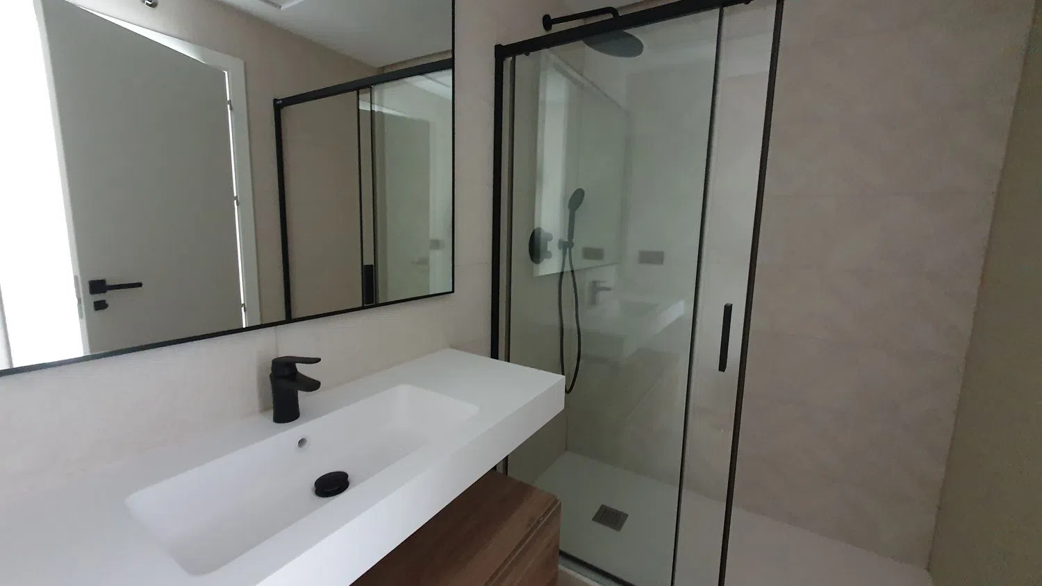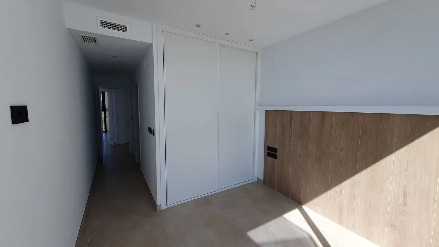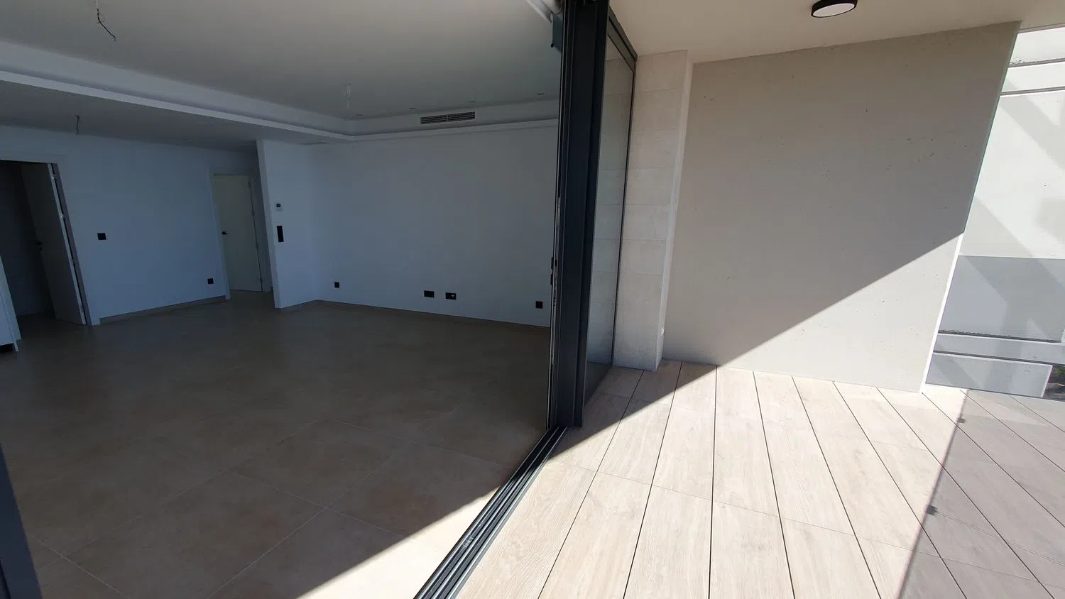 Este apartamento de 2 dormitorios (95m² + 19m² de terraza) destaca por su estilo moderno en tonos neutros y un diseño diáfano. Sus espacios abiertos y amplios ventanales que llegan hasta el suelo permiten una luminosidad excepcional, creando un ambiente acogedor y lleno de luz natural. Entre las características notables se encuentran los elegantes suelos de cerámica imitación parquet, armarios empotrados, una cocina completamente equipada y baños que ofrecen confort y funcionalidad, además de puertas lacadas en blanco que aportan un toque contemporáneo.