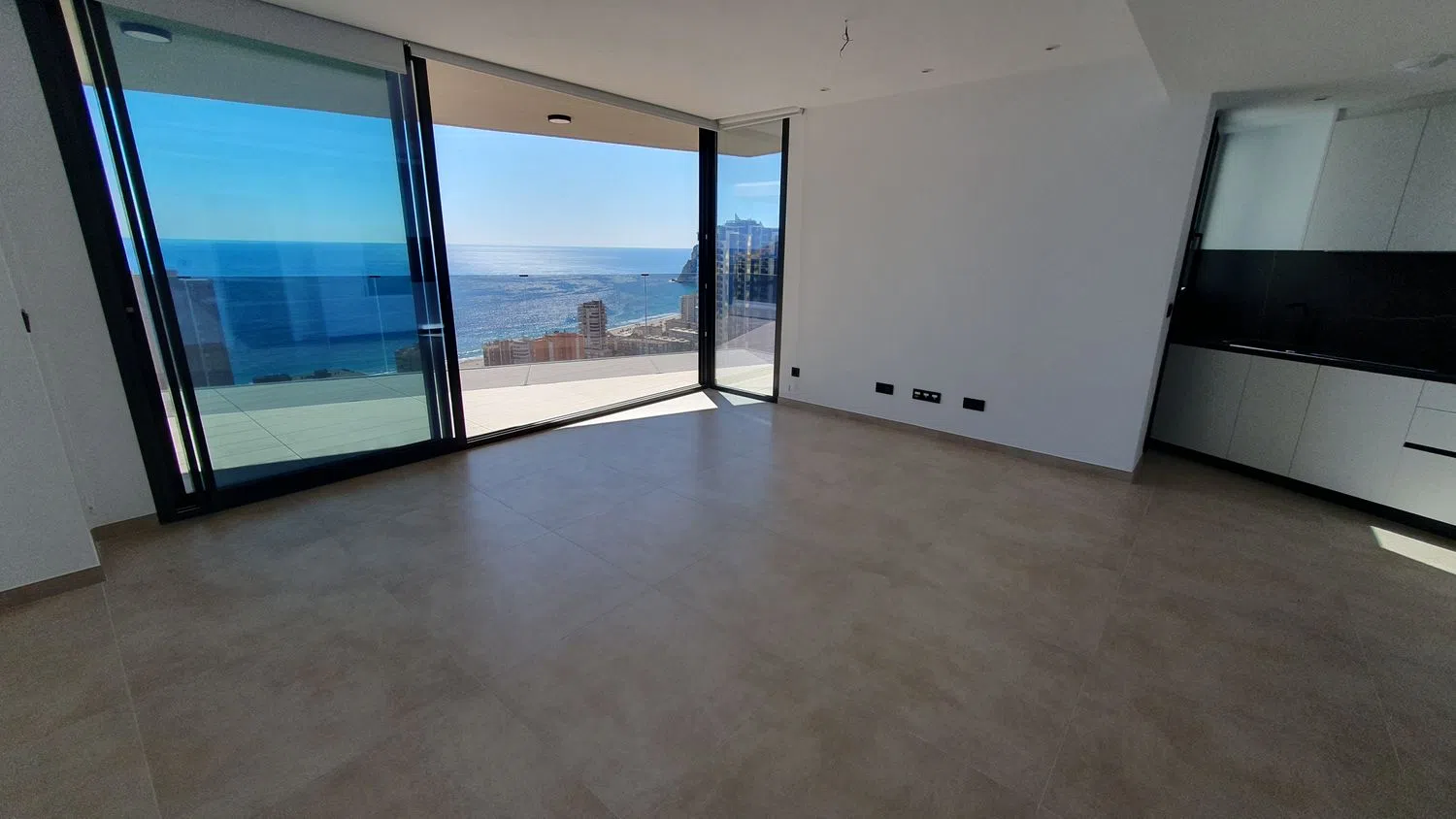 ¿Quién necesita un televisor con vistas tan espectaculares al mar? El salón de este increíble piso ofrece una experiencia visual única, casi como tener una pantalla enorme con la mejor definición posible. La claridad de los colores resalta especialmente los tonos azules, creando una experiencia inmersiva que conecta directamente con el exterior. Al abrir la ventana, se puede sentir la suave brisa del Mediterráneo y escuchar el canto de las gaviotas, convirtiendo cada momento en un deleite sensorial.