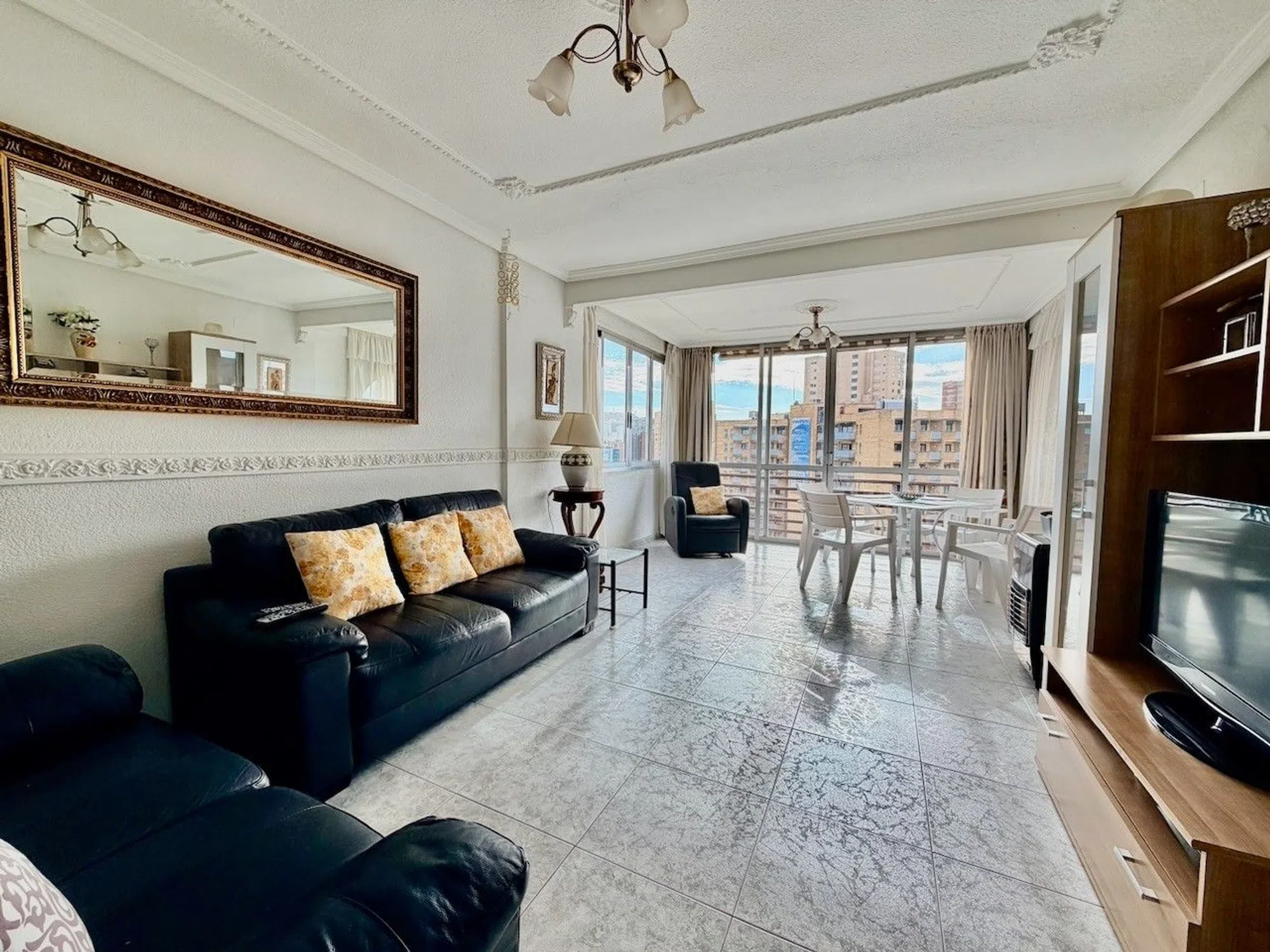 Descubre este luminoso apartamento de esquina ubicado en una de las zonas más demandadas de Playa de Levante, Benidorm. Su orientación y su posición dentro del edificio le permiten disfrutar de vistas completamente despejadas a la ciudad, aportando amplitud, privacidad y una excelente entrada de luz natural. La urbanización ofrece amplio aparcamiento comunitario, una ventaja fundamental tanto para uso propio como para alquiler turístico, especialmente en temporada alta. Además, cuenta con una gran piscina comunitaria, perfecta para relajarse, tomar el sol o disfrutar del ambiente de vacaciones sin salir de la comunidad. Como extra poco habitual, el complejo dispone de bar dentro de la urbanización, aportando comodidad y un valor añadido muy atractivo para huéspedes y residentes. El edificio está equipado con ascensor, garantizando accesos cómodos y sin barreras. La ubicación es ideal: en una zona tranquila, pero a la vez muy cerca de la playa de Levante y de todos los servicios esenciales como comercios, transporte, restaurantes y zonas de ocio. Este equilibrio entre comodidad y tranquilidad convierte este apartamento en una opción perfecta tanto para vivir como para obtener un excelente rendimiento en alquiler turístico. En resumen, una oportunidad sobresaliente por su ubicación, vistas, servicios comunitarios y alto potencial de rentabilidad en la Costa Blanca.