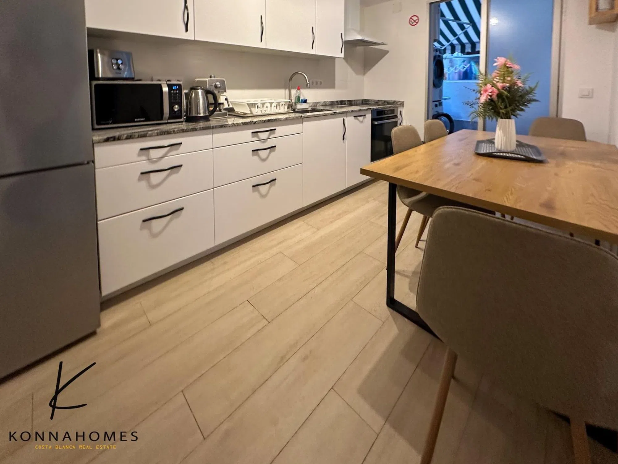 Una joya escondida en pleno centro de Benidorm Hay pisos reformados, y luego está este: un apartamento que parece sacado de un hotel boutique, pero con la calidez de un verdadero hogar. Ubicado en una primera planta con ascensor, en una calle tranquila del centro de Benidorm y a pocos minutos andando de la playa, este piso ha sido completamente renovado con un estilo que mezcla lo mejor del diseño nórdico con la esencia mediterránea. El resultado es un espacio impecable, pensado para disfrutar desde el primer día —o ponerlo a rentar desde el minuto uno, ya que cuenta con licencia turística activa. Nada más entrar, lo primero que se nota es la luz, los acabados cuidados y esa sensación de orden y confort que solo ofrecen los sitios bien pensados. Paredes lisas, suelos de tarima, apliques modernos, aire acondicionado en cada estancia, ventiladores de techo, televisores, ropa de cama y mobiliario de calidad. Todo está listo. Tiene tres habitaciones dobles, todas con armarios empotrados. La principal es en suite, y las tres comparten un aire muy acogedor, como si entraras a una habitación de hotel, pero con tu toque personal. La cocina es amplia y luminosa, con capacidad de sobra para comer hasta seis personas. Equipada con todos los electrodomésticos nuevos —lavavajillas, horno, vitrocerámica, cafetera, microondas, nevera, tostadora…—, además de sistema de ósmosis, lavadora, secadora y termo Ariston de última generación. Desde aquí se accede a una galería cubierta de unos 20 metros cuadrados, ideal como zona de lavado y almacenaje, con armarios empotrados extra. El salón-comedor es generoso, con espacio para una mesa de ocho comensales y un gran sofá cama. Desde aquí se accede a la terraza privada, mitad cubierta, mitad al aire libre, perfecta para las cenas de verano o desayunos tranquilos. Da a una calle interior muy silenciosa, de esas que sorprenden en el corazón de una ciudad tan viva. El baño principal, situado en el distribuidor, sigue el mismo nivel de acabados: ducha moderna, mueble con doble seno, ventilación natural, extractor, aire acondicionado e iluminación pensada al detalle. Y la ubicación… simplemente ideal. A un paso de todo: playa, supermercados, restaurantes, transporte, tiendas, cafeterías, ocio, peluquerías… todo lo que puedas necesitar está a unos minutos caminando. Un piso especial, reformado con mimo, con licencia turística y con ese “algo” difícil de explicar pero fácil de sentir. parking privado y ascensor. se vende tal como se ve en las fotos, para comenzar tu negocio ya o vivir en un piso de ensueño todo listo solo queda traer tus cosas. te esperamos para visitarlo y seguro a notaria directo!