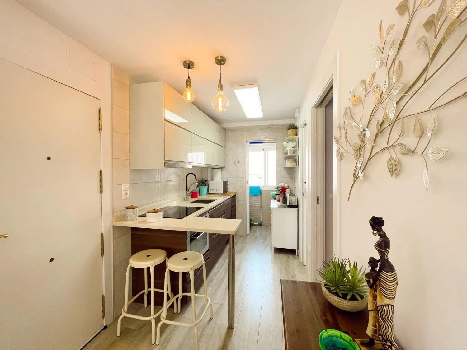 Las puertas corredizas de lacado blanco no solo aportan un toque de elegancia, sino que también contribuyen a crear una sensación de amplitud y optimización del espacio. Además, la zona de galería se encuentra en el interior de la cocina. El complejo residencial ofrece un cómodo lugar de aparcamiento, áreas ajardinadas y una piscina comunitaria, así como servicio de conserjería durante el día. ¡Esta es tu oportunidad para programar una visita y conocer más sobre esta propiedad única!
