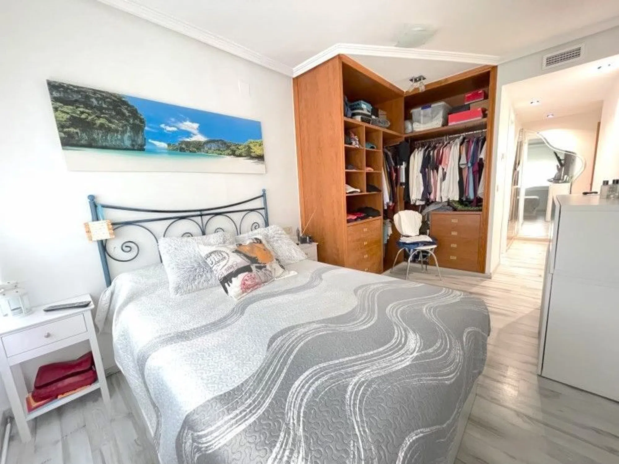 Impresionante apartamento en la mejor zona de Benidorm Poniente. La propiedad tiene una excelente orientación y situación en la codiciada zona tranquila en poniente, cerca de comercios y playas. Este luminoso apartamento cuenta con dos dormitorios dobles y dos baños completos, pasillo con gran cantidad de armarios, cocina completa con galería, un amplio salón comedor con acceso a terraza. Una oportunidad inmejorable, para disfrutar de la comodidad y lujo de la zona, en una urbanización con jardín, piscina y barbacoa. Existe la posibilidad de comprar dos propiedades en la misma planta. [IW].