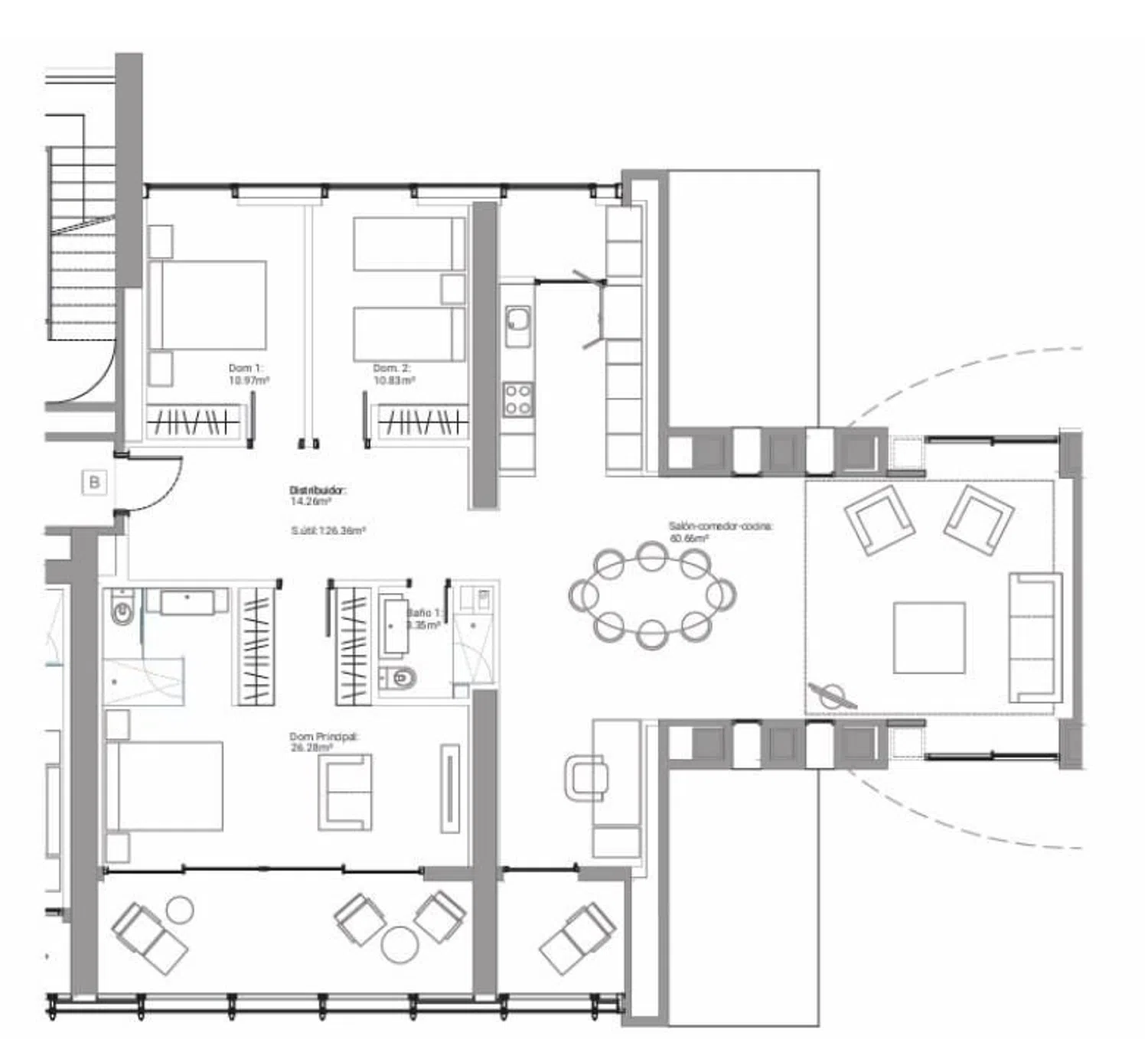 Todos los detalles han sido cuidadosamente considerados, incluyendo aire acondicionado central tanto para frío como para calor, suelo radiante en el baño y una cocina completa equipada con electrodomésticos de última generación, como vitrocerámica, campana extractora, horno, frigorífico, microondas y lavavajillas. El precio de la vivienda incluye tanto los muebles como una plaza de garaje subterráneo y un trastero separado, aumentando su funcionalidad.