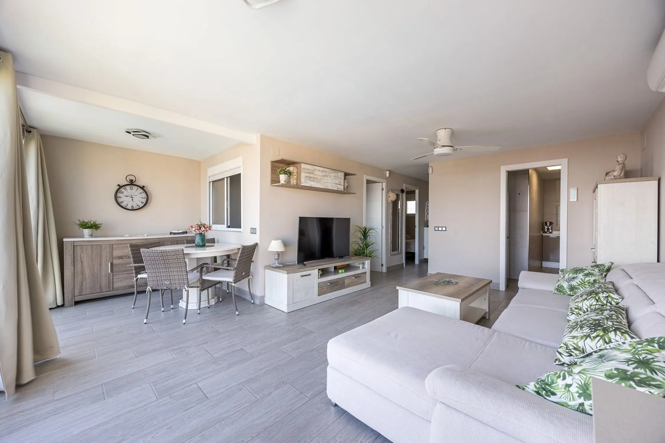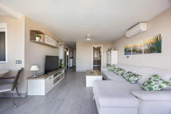 Descubre este acogedor apartamento de 2 dormitorios y 1 baño, situado en una planta alta con unas vistas despejadas que alcanzan al mar. Su orientación sur garantiza luz natural durante todo el día, creando un ambiente cálido y confortable. La vivienda cuenta con cocina independiente totalmente equipada, se entrega amueblada y dispone de carpintería exterior de Climalit, que aporta confort y eficiencia. Ubicado en una urbanización privada con amplios jardines y una espectacular piscina comunitaria, es el lugar ideal tanto para disfrutar como residencia habitual o como segunda vivienda vacacional. ¡Ven a verlo y enamórate de sus vistas y entorno! Contáctanos hoy mismo para concertar tu visita.