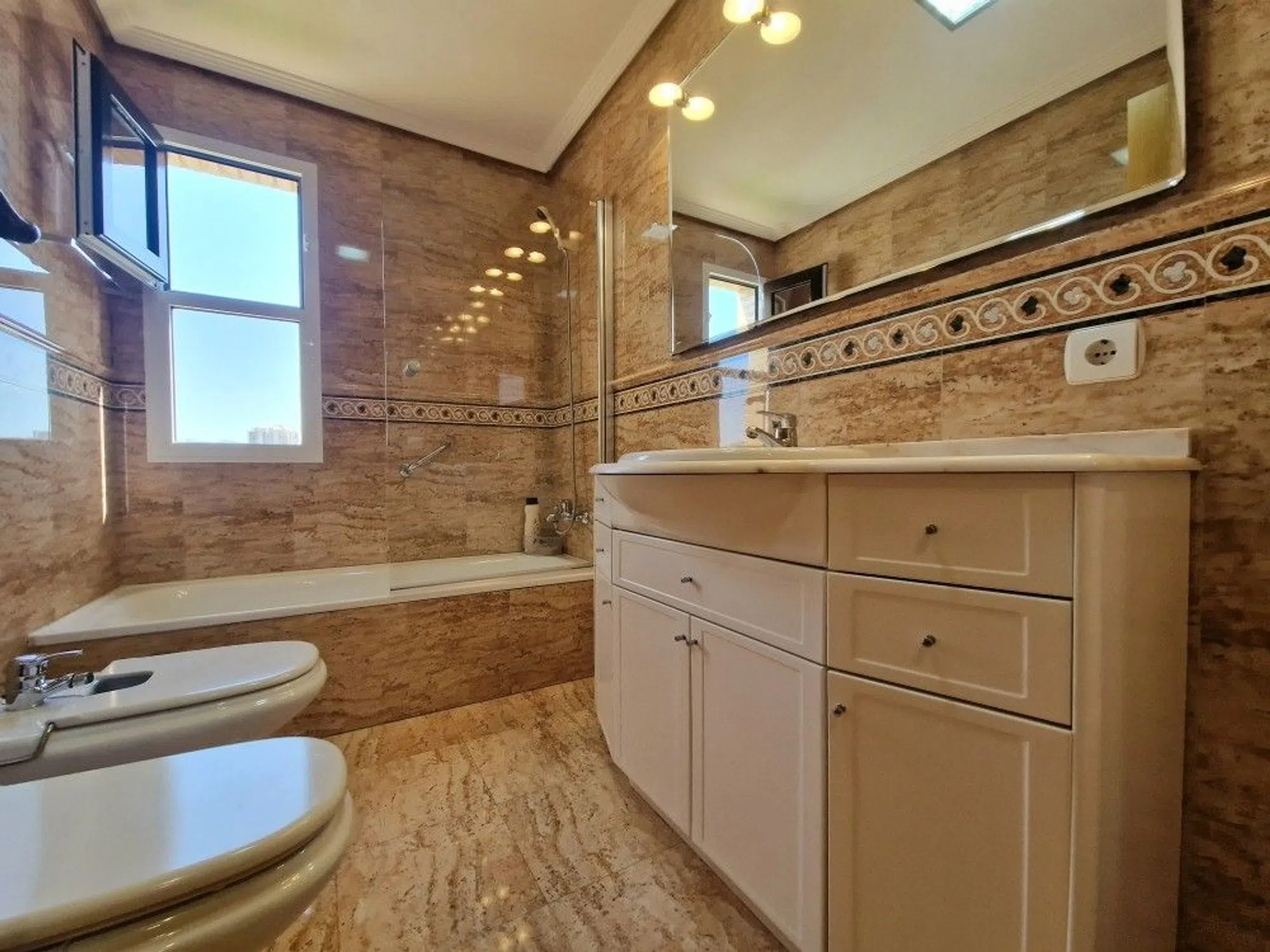 Esta propiedad absolutamente exclusiva, con una superficie de 161 m², se caracteriza por su distribución espaciosa y cómoda, y es ideal como vivienda principal o secundaria, así como para un proyecto de inversión. La casa tiene 4 dormitorios y 3 baños. Todas las habitaciones, incluido el salón, dan completamente a la calle y ofrecen unas vistas impresionantes al mar, las montañas y la ciudad, creando las condiciones ideales para el descanso. La cocina, completamente amueblada y equipada, cuenta con placa de inducción, horno, microondas, lavavajillas, frigorífico y lavadora-secadora. Las ventanas ofrecen vistas a las montañas y hay un lavadero funcional. La casa cuenta con aire acondicionado (frío/calor), persianas eléctricas impecables, estructuras metálicas bicolores (blancas por dentro y marrones por fuera), ventanas oscilobatientes, suelo de cerámica imitación madera, puerta blindada, caja fuerte y televisión. El agua caliente para uso doméstico se produce utilizando gas de la ciudad. Además, los armarios empotrados, situados en todas las habitaciones, proporcionan un espacio óptimo para el almacenamiento. El complejo residencial ofrece excelentes zonas comunes, diseñadas para la comodidad y el disfrute de los residentes: amplios jardines con césped natural y árboles, una gran piscina en forma de lago, pista de tenis, sauna, gimnasio con diversas máquinas y zona infantil. El amplio aparcamiento al aire libre está equipado con cámaras de videovigilancia. Situado a solo 7 minutos a pie de la playa.