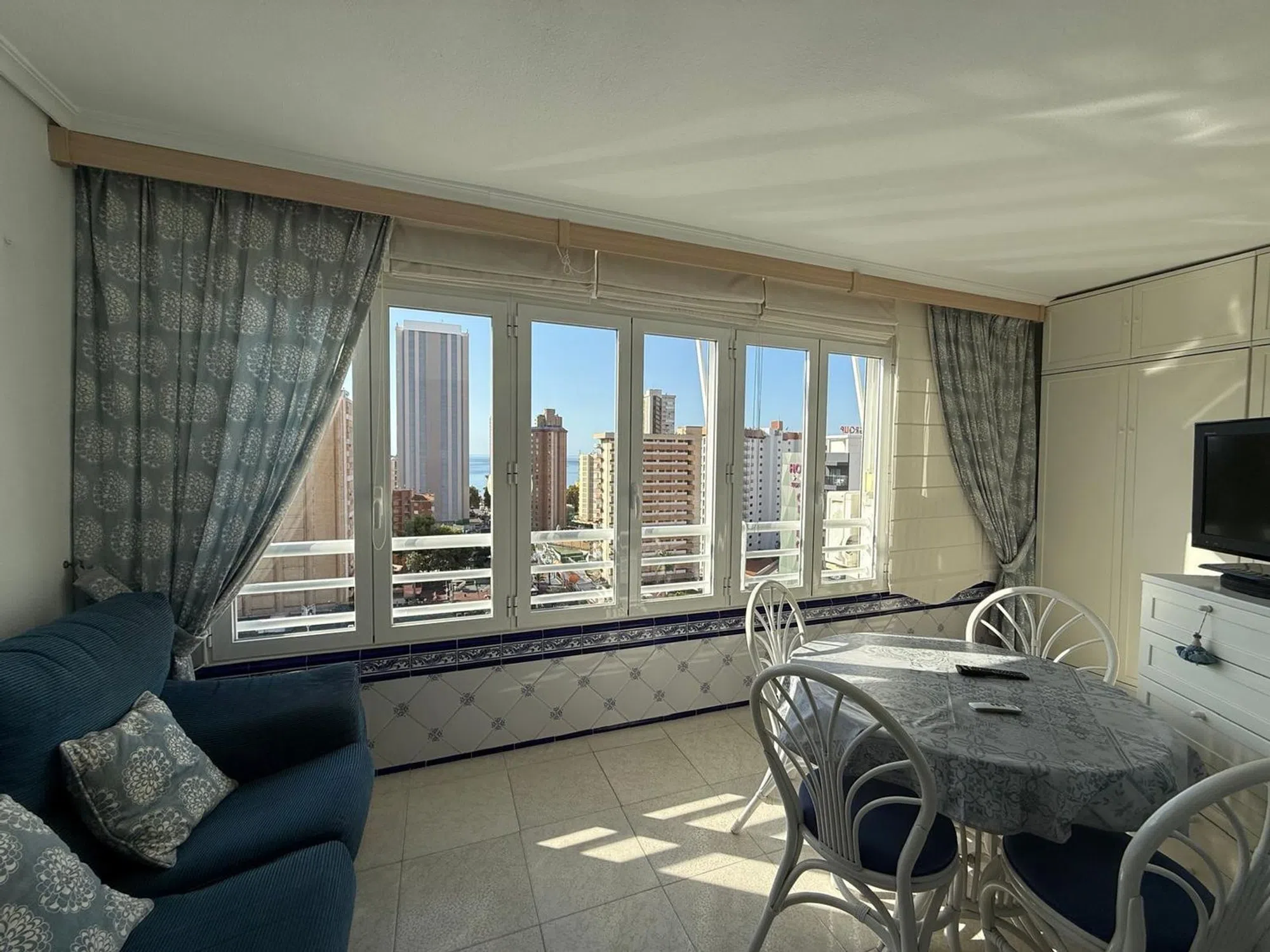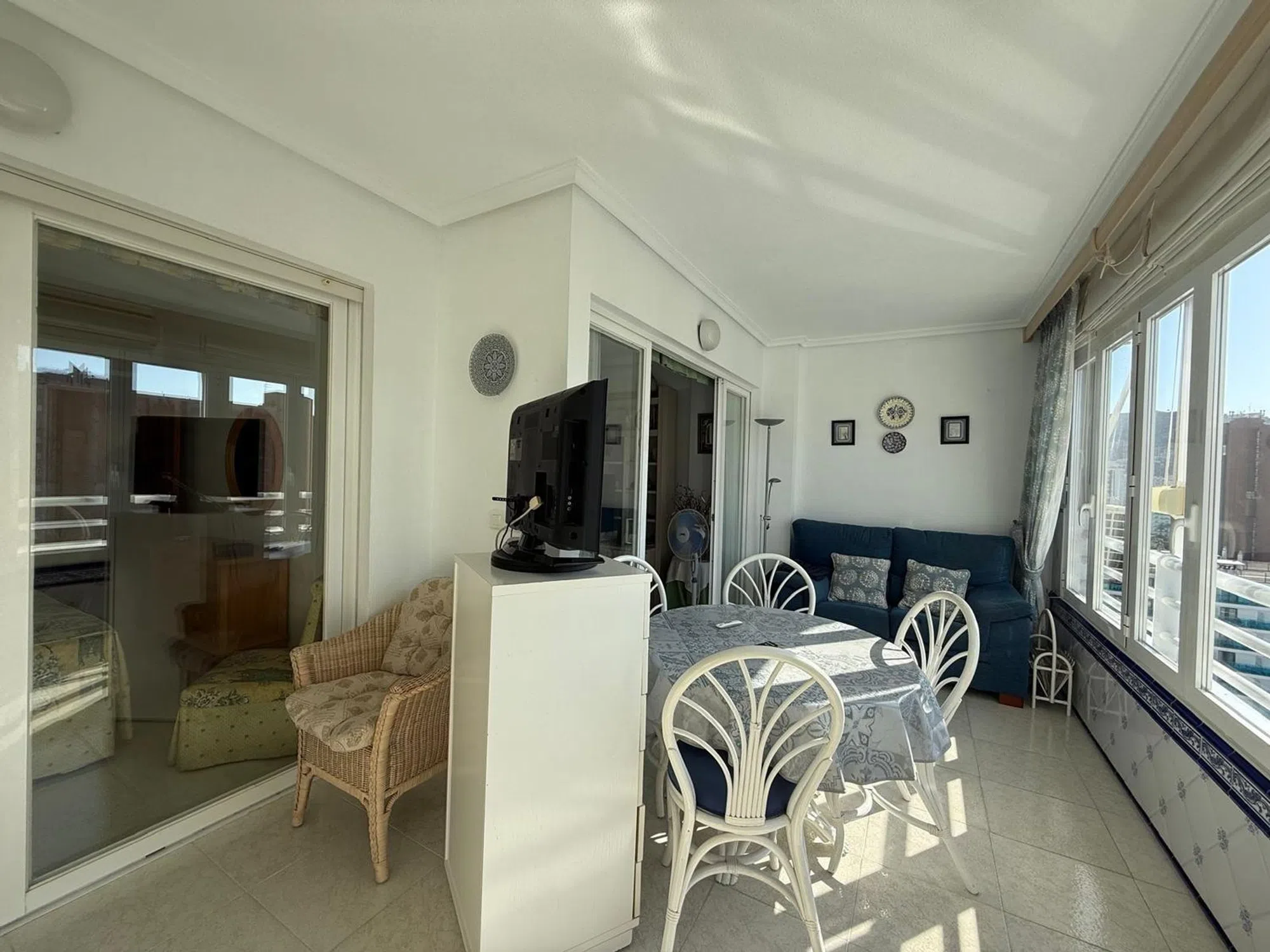 Descubre este encantador apartamento reformado, ideal para disfrutar del estilo de vida costero. Con un dormitorio amplio que cuenta con armario empotrado y un moderno cuarto de baño completo equipado con plato de ducha, esta propiedad es perfecta tanto para residir como vacacionar. La cocina ha sido completamente renovada e incluye electrodomésticos modernos como lavavajillas y lavadora. El luminoso salón comedor se conecta a una generosa terraza acristalada, equipada con cerramiento climalit y toldos eléctricos, donde podrás relajarte mientras disfrutas las impresionantes vistas al mar. Amueblado cuidadosamente y dotado de aire acondicionado frío/calor en el salón y el dormitorio, garantiza comodidad durante todo el año. Además, dispone de un espacioso garaje cerrado que no solo alberga tu vehículo sino también sirve como trastero adicional. Esta hermosa urbanización ofrece piscina comunitaria, tenis y solarium; está situada a tan solo 300 metros de la Playa De Levante - todos los servicios están cercanos para su conveniencia.