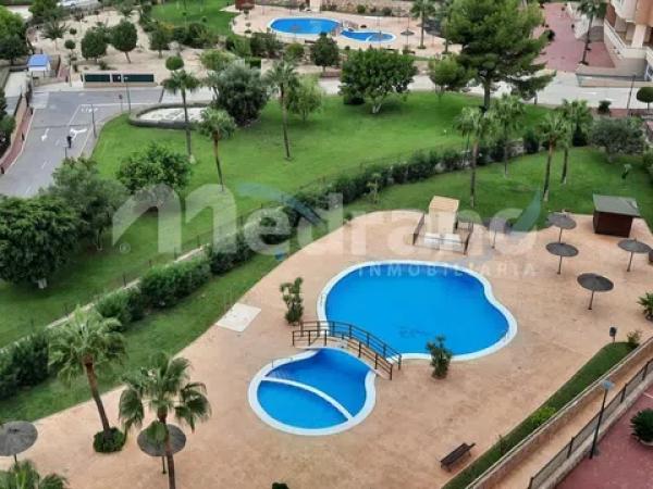 Se vende esta vivienda de aproximadamente 86 m2, ubicada en Zona Poniente y a 800m de la playa. La vivienda es completamente exterior y muy luminosa, consta de 2 habitaciones, ambas con armarios empotrados, baño completo, con bañera, cocina equipada con galería. En el precio está incluida una plaza de garaje numerada. Se encuentra en un residencial privado con piscina y jardín comunitario. La zona del inmueble es muy cómoda, tranquila, cercana a colegios, servicios y comercios. ref: 3521.